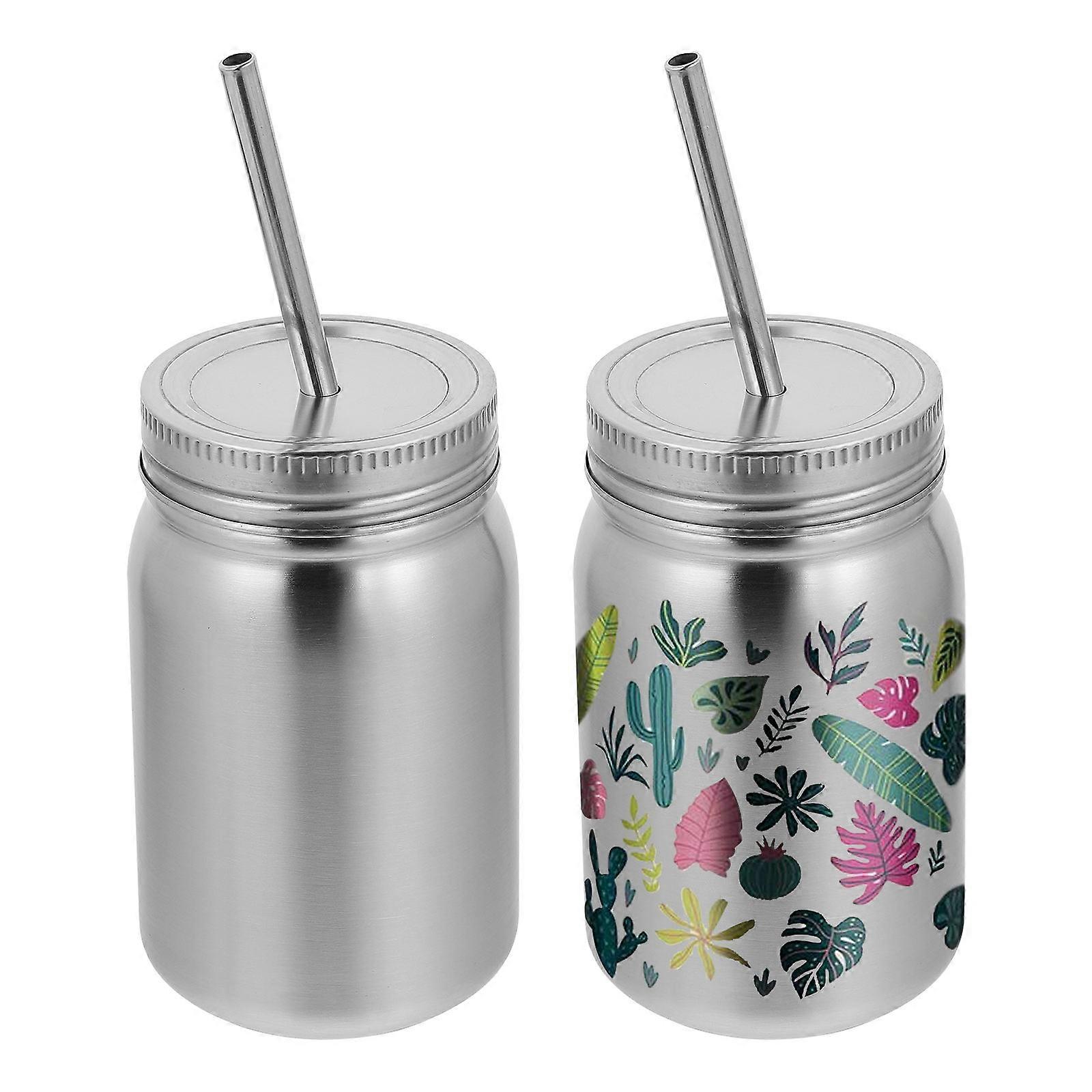 Stainless Steel Bottles Mason Jars for Milk Storage 2Pcs with Straw