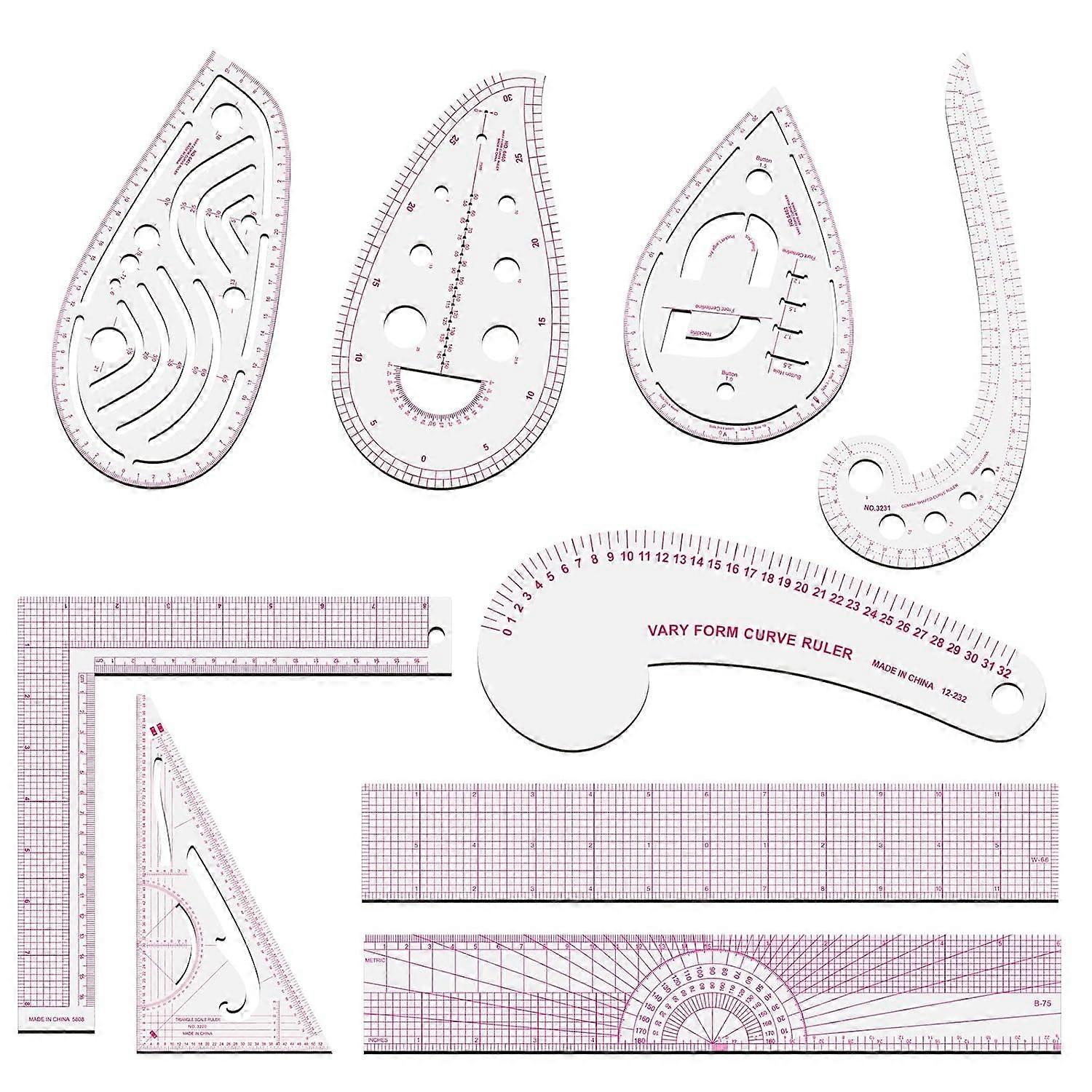 Sewing Rulers Set, 9 Styles Plastic Sew French Curve Ruler, Metric Measuring Tools for Designers, Tailors, Craft, DIY (Style B-9PCS)