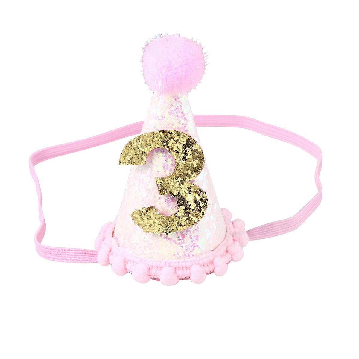 Plush Ball Birthday Hat Set 2Pcs Pink Glitter Hats for