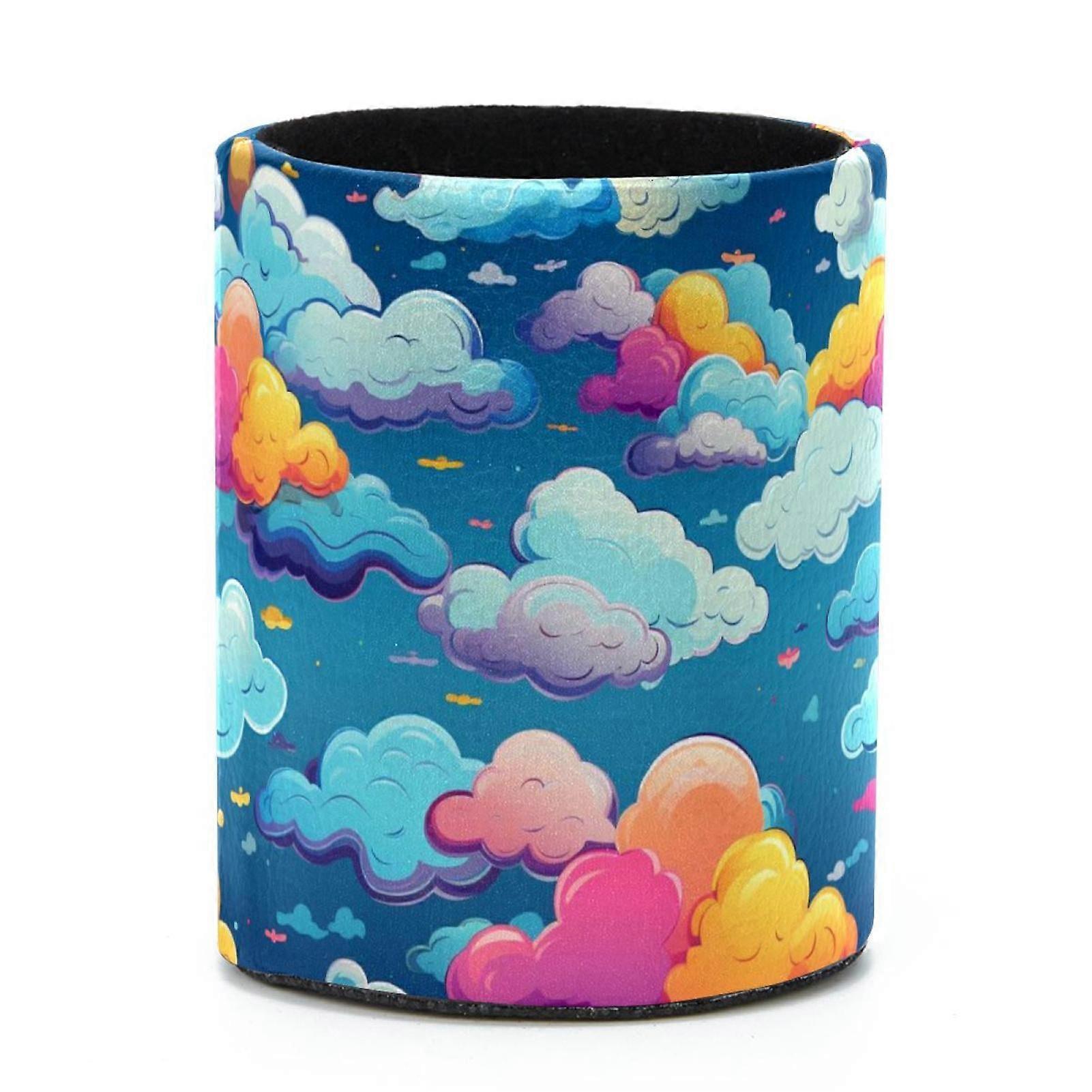 Compact and Stylish: Cylindrical Pen Holder and Desktop Organizer for Makeup and Art Supplies, Colorful Clouds