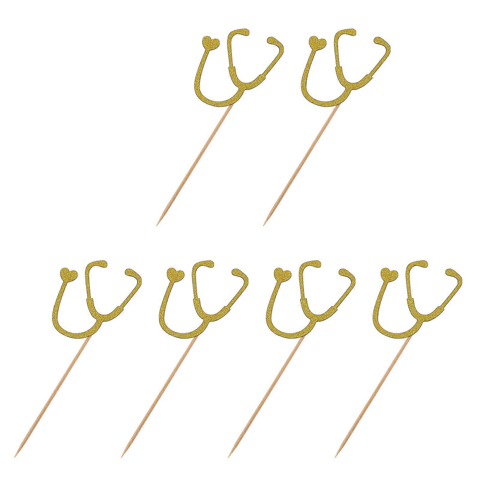 Stethoscope Cake Topper Cupcake Decorations for Party 24Pcs Light Yellow Cake Decor
