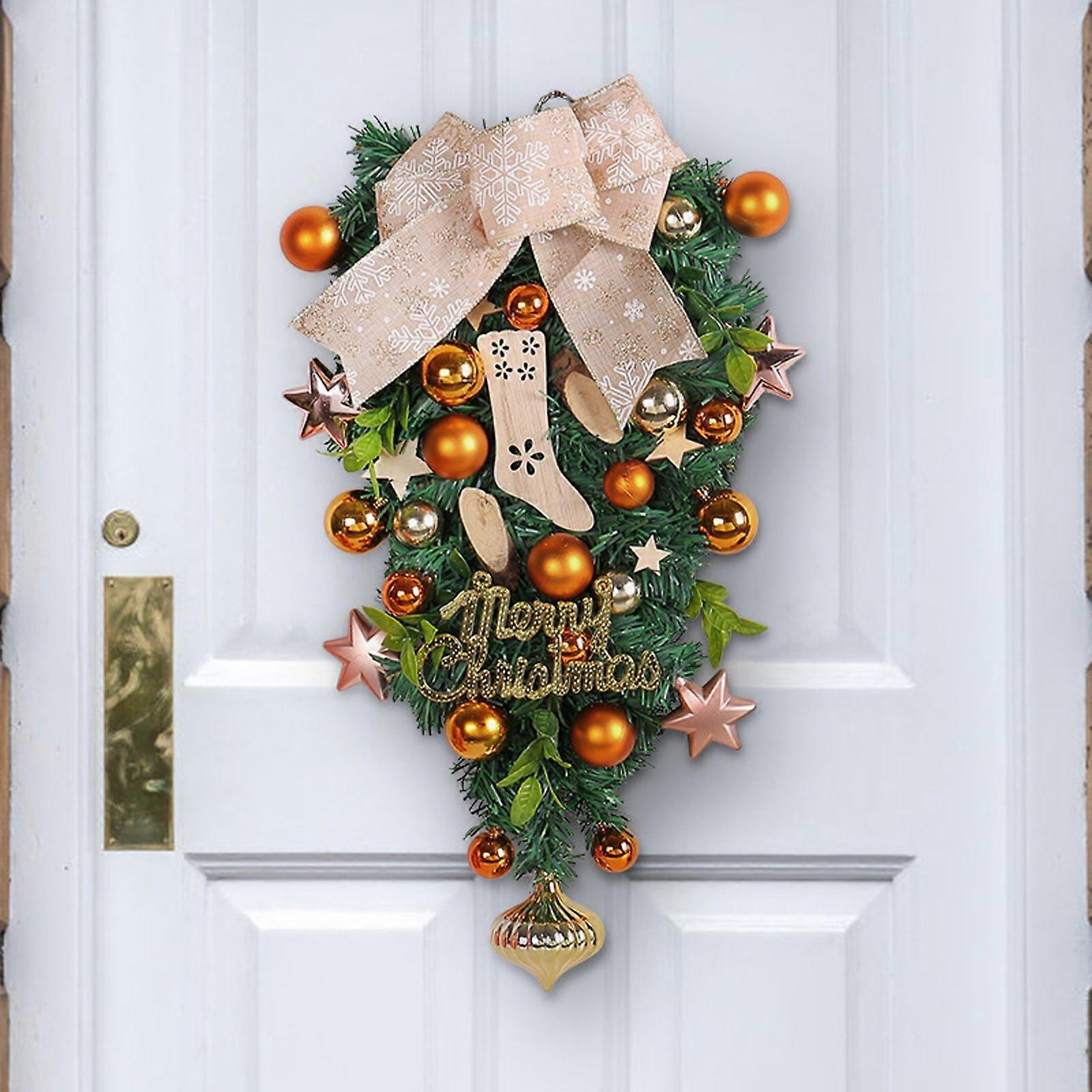 Christmas Candy Cane Wreath for Front Door, 2024 New Red White Teardrop Swag, Stairway Outdoor Decor, compatible with outdoor use