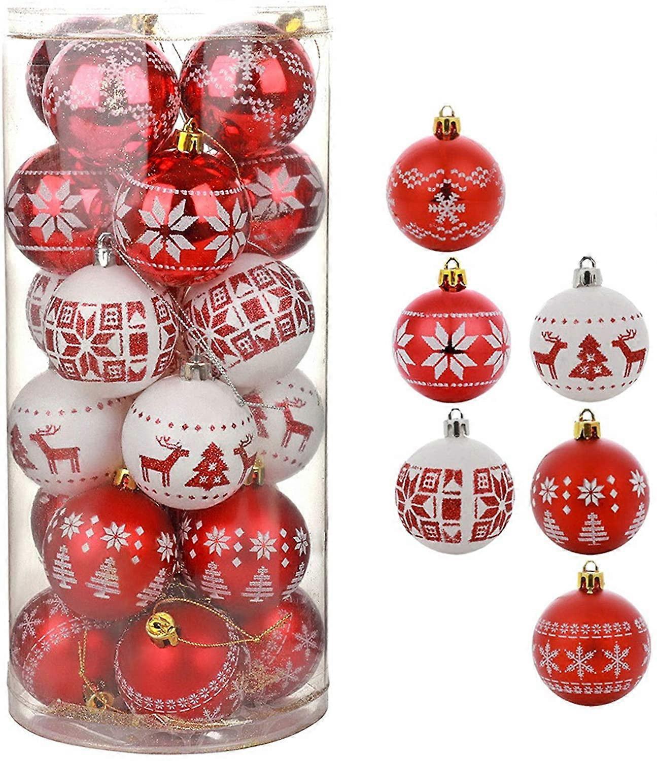 24ct 2.4" Shatterproof Christmas Ball Ornaments, Glittering Red-White Baubles Set, Compatible with Christmas Tree Decorations