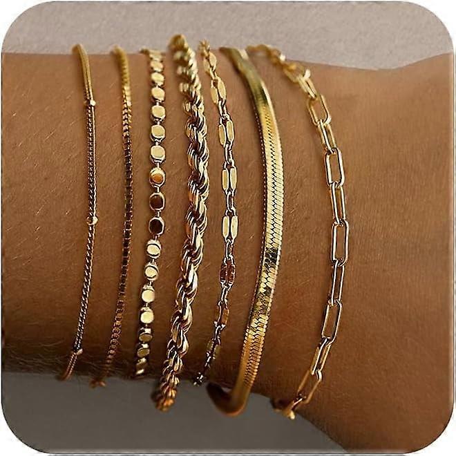 Gold Bracelets for Women,14K Real Gold Jewelry Sets for Women Cute Tennis Beaded Bracelets for Women,Cuban Link Paperclip Chain Gifts for Women Girls