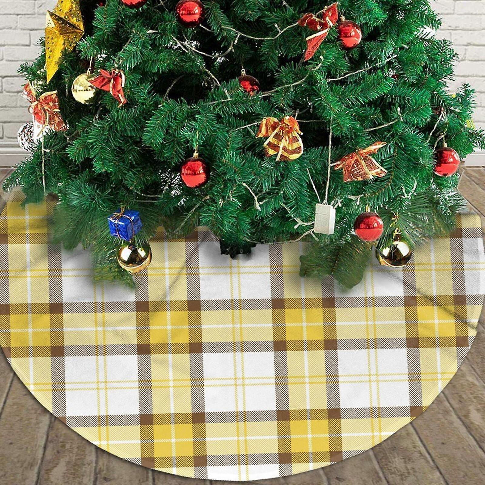 Christmas Tree Skirt, 36" Yellow And Brown Tartan Plaid For Christmas Decorations&Ornaments