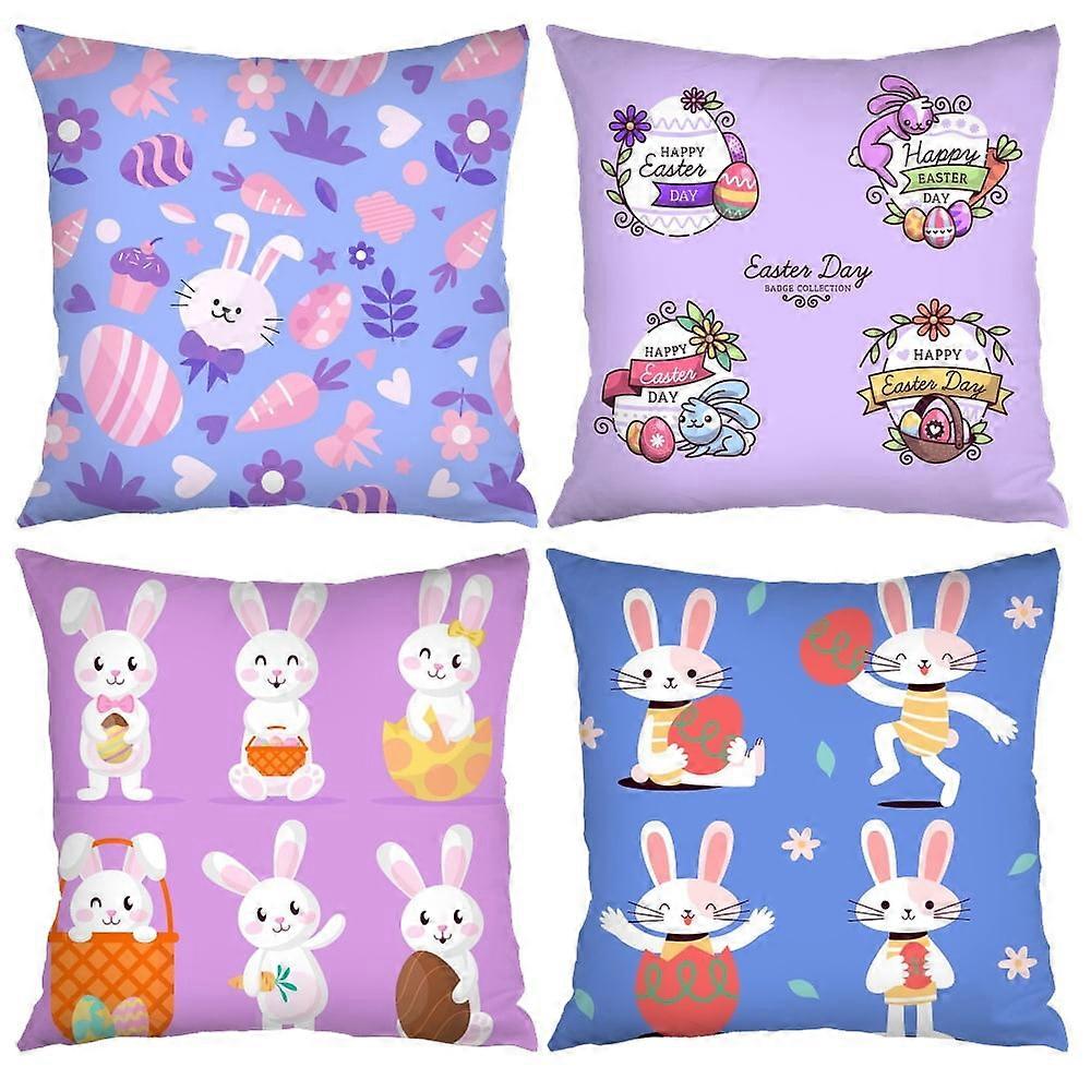 Dicasser 4 Pack Easter Bunny Throw Pillow Covers Spring Rabbit Egg Throw Cushion Cover Pillowcase Easter Home Decoration 18×18 Inches