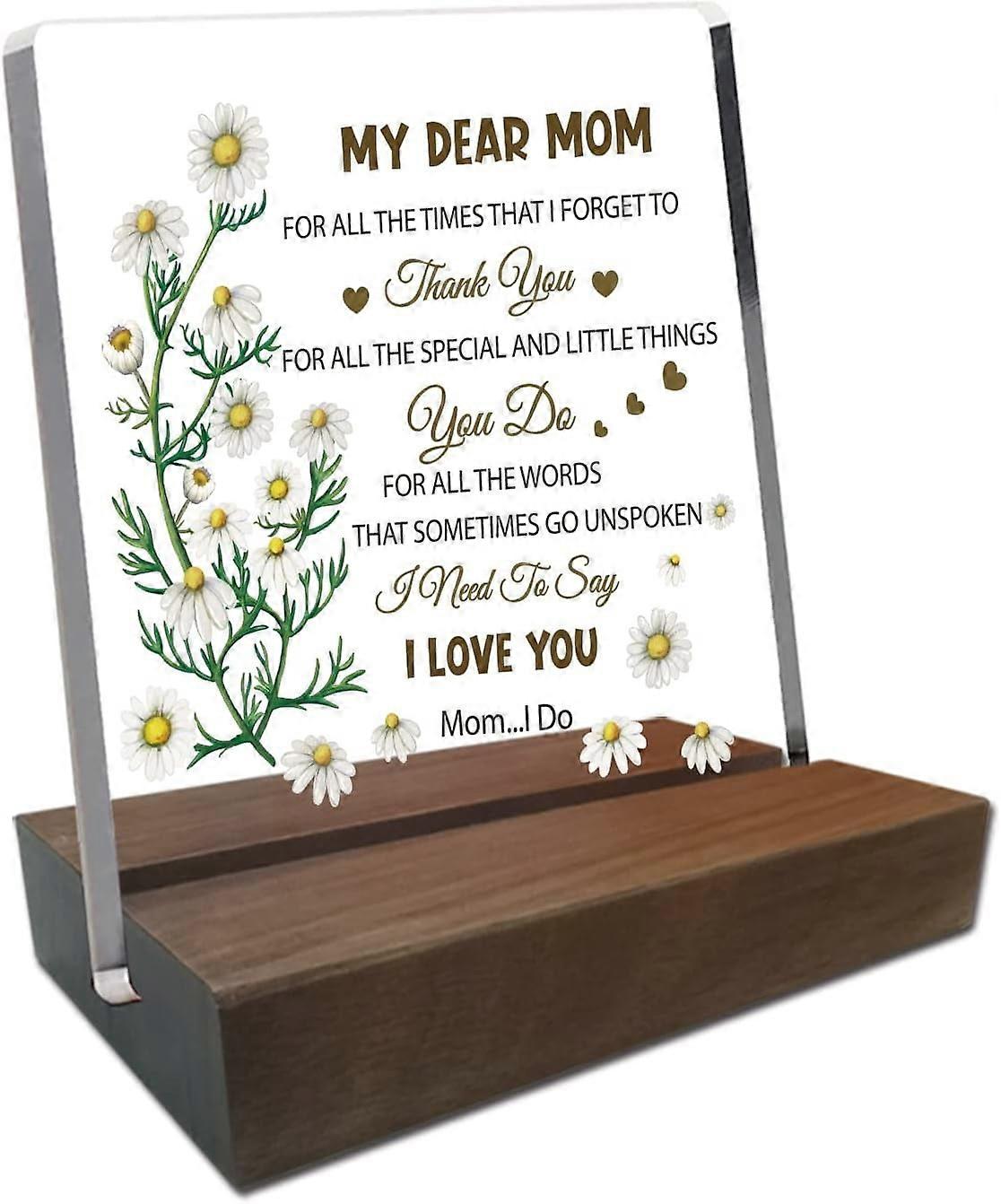 To My Mom Keepsake Acrylic Sign with Wood Stand - I Love You Mom Desktop Display, Inspirational Desk Decor, Mother's Day & Birthday Gift