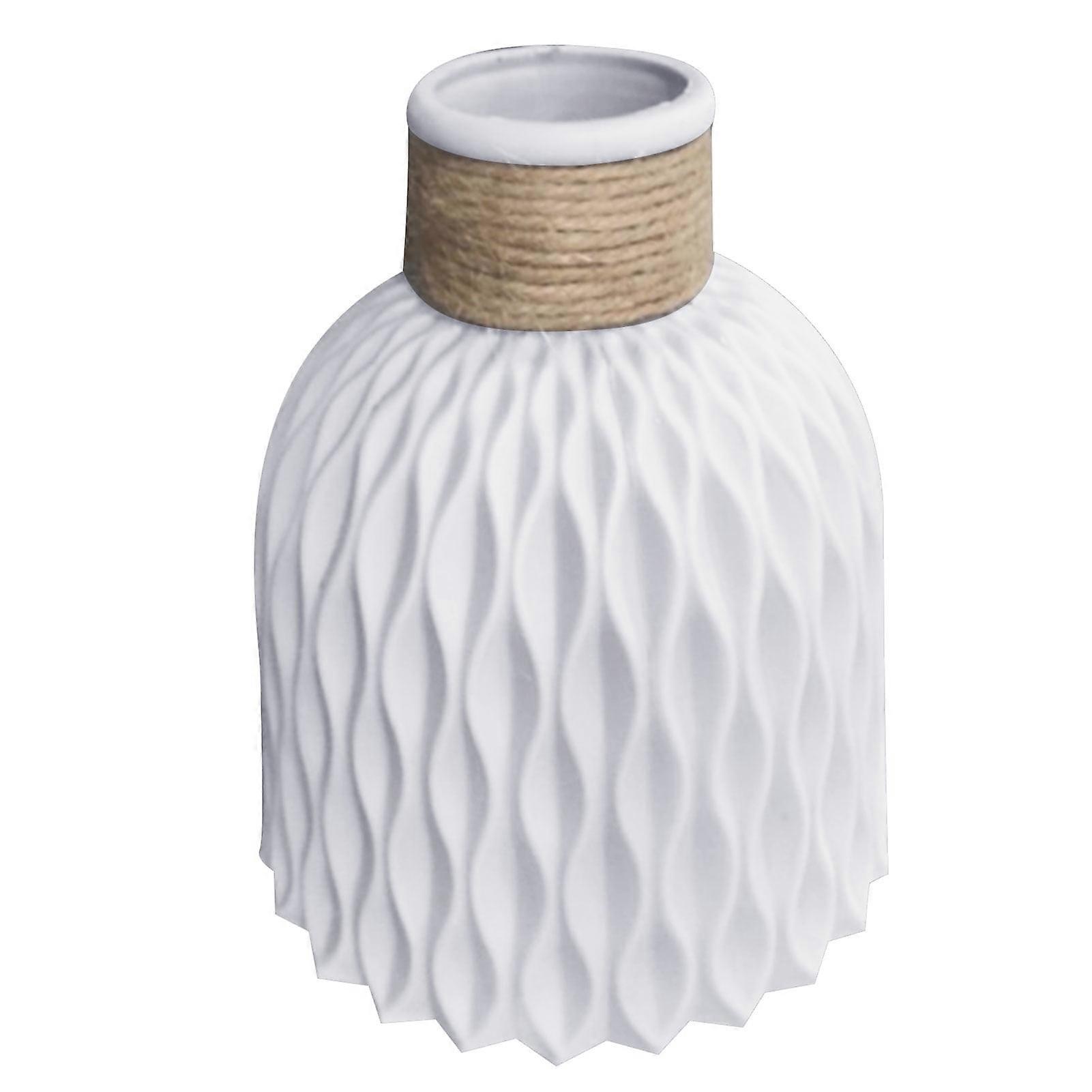 Happydeer Nordic Style Plastic Faux Ceramics Striped Vase Desktop Decor for Home (White)