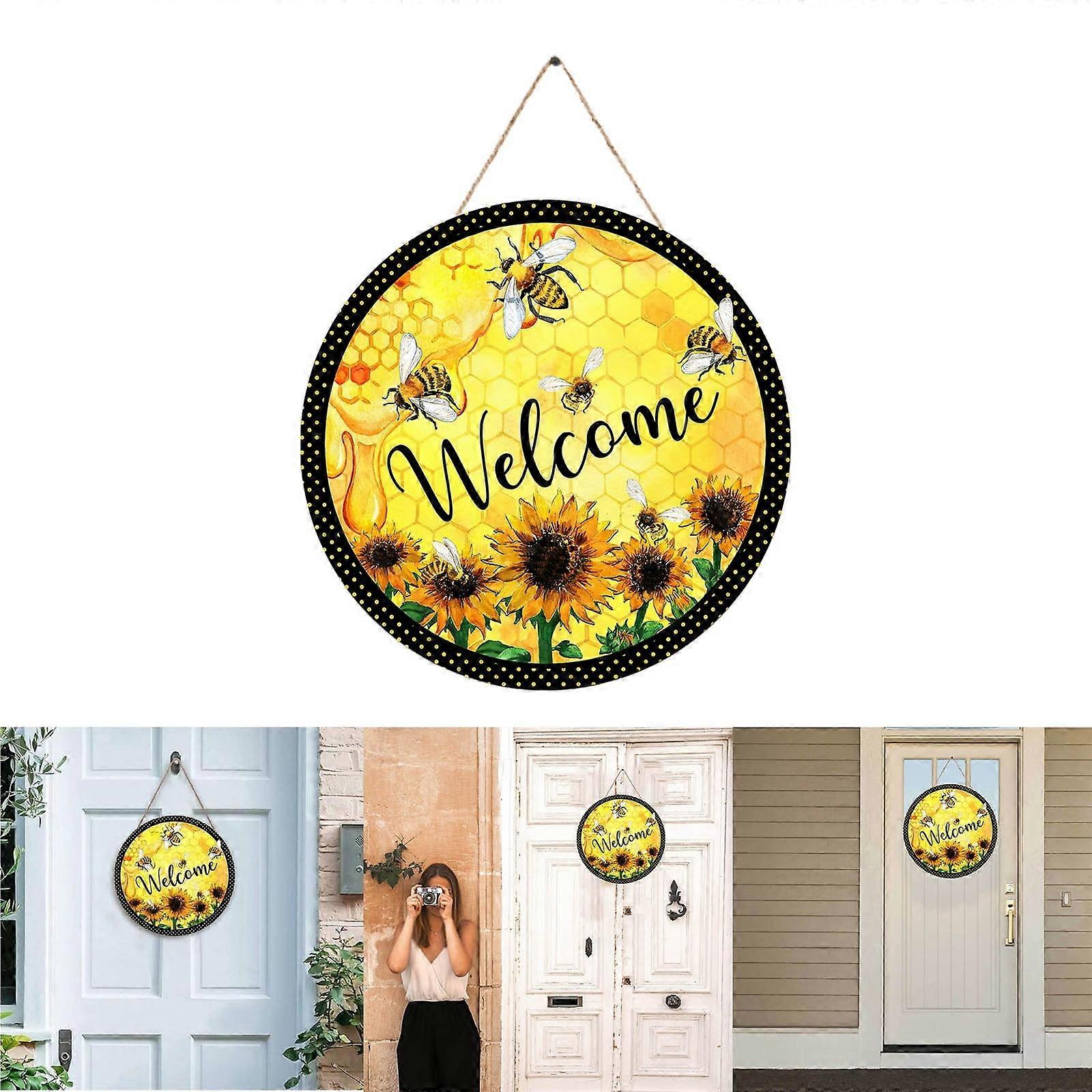 Wooden Handicraft Door Plate Round Sunflower Pattern Wooden Garden Home Hanging Decoration Home Decor