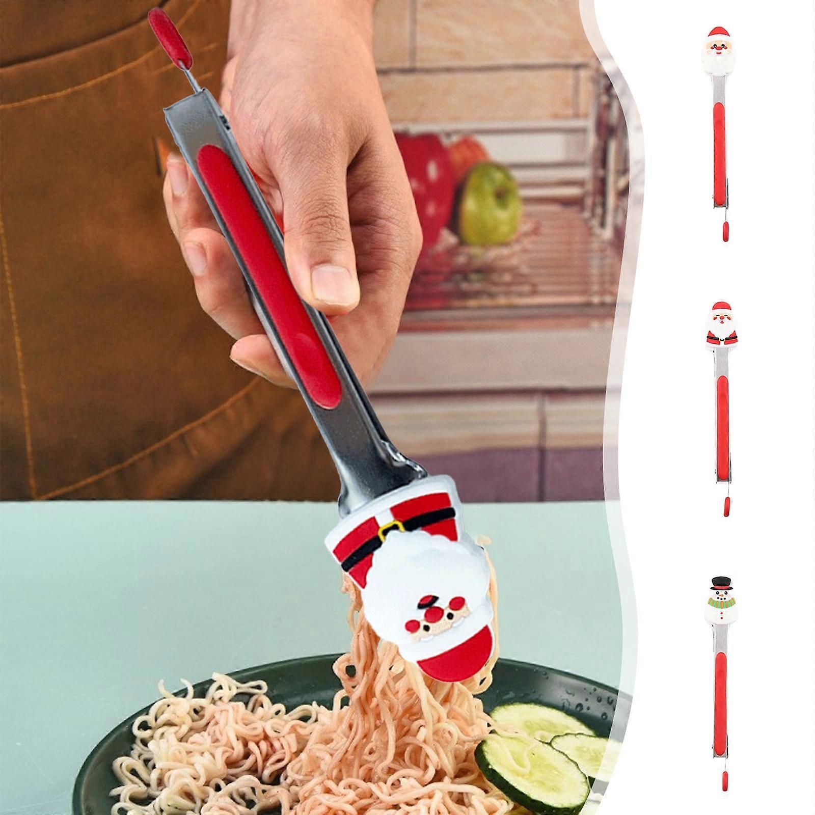Jacenvly Christmas Decorations Outdoor 10" Stainless Steel Silicone Food Clips, Cartoon Pattern, Barbecue & Kitchen Gadget, Home Kitchen Decor