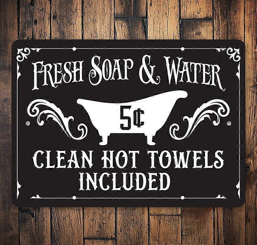 Fresh Soap & Water Sign Fresh Bath Sign Vintage Bath Sign Bathroom Decor Antique Look For Bathroom Bathroom Ideas Bathroom Signs Size: 8 x 12 Inch