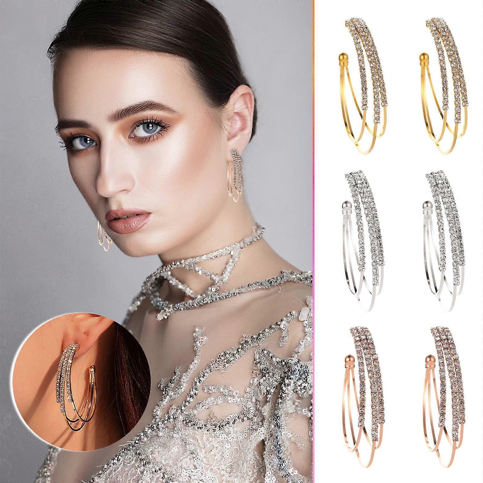 Jacenvly New New Arrivals Jewelry Fashion Diamond Circle Earrings Ladies Personality Temperament Earrings Summer Savings Clearance