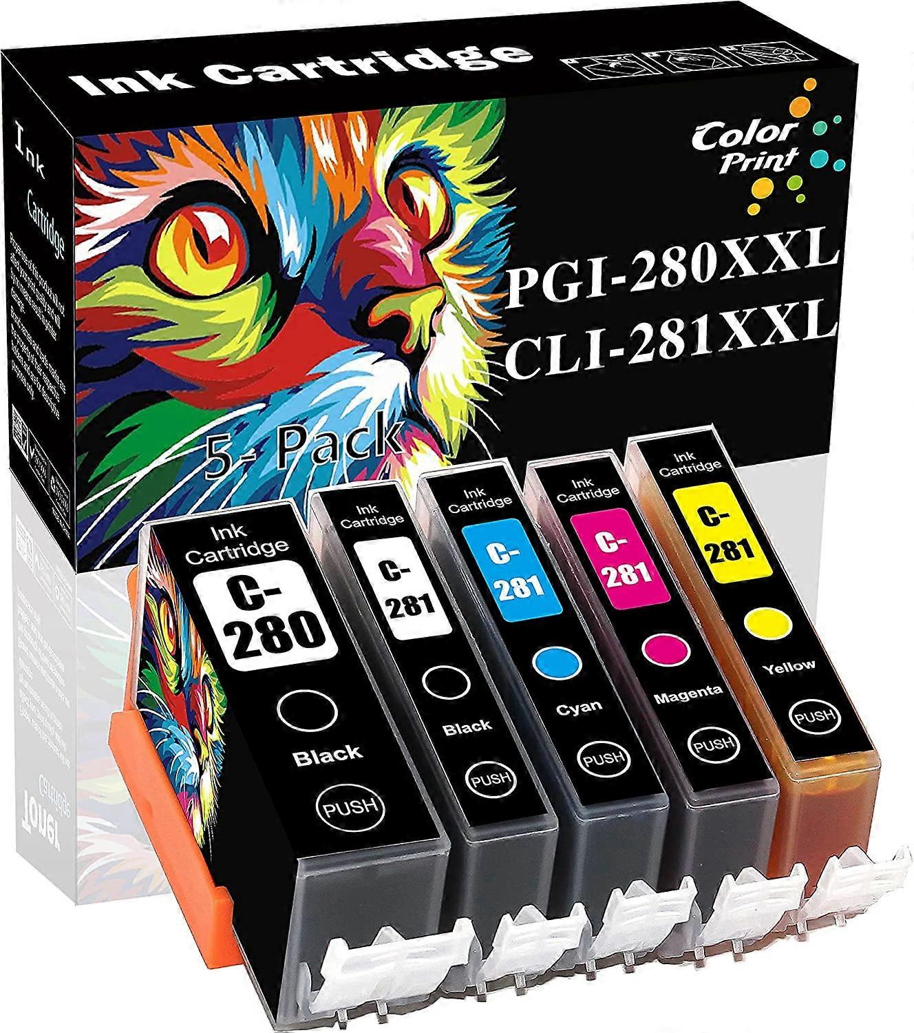 (5-Pack, XLBK,BK,C,M,Y) Compatible PGI280XXL CLI281XXL Ink Cartridge 280 281 Replacement for Canon PGI280