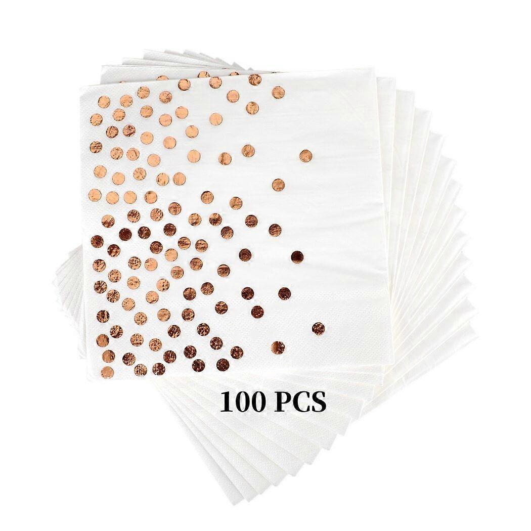 100PCS Rose Gold Paper Napkins for Party, Golden Dots Luxury Beverage Napkins for Events, Family Gatherings Folded Napkins Tissues