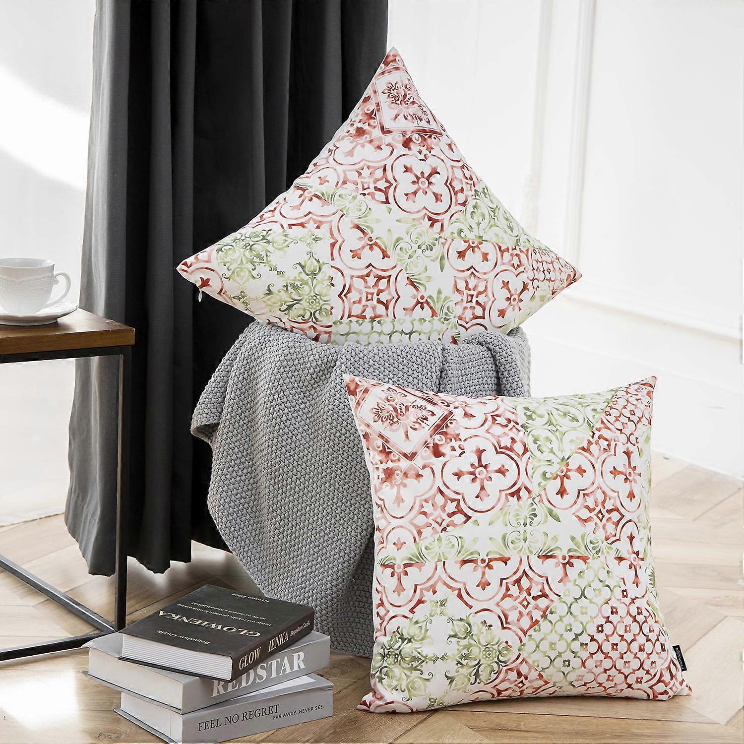 Phantoscope New Living Series Square Decorative Throw Pillow Cover, 18" x 18", Yellow/Green Retro, 2 Pack