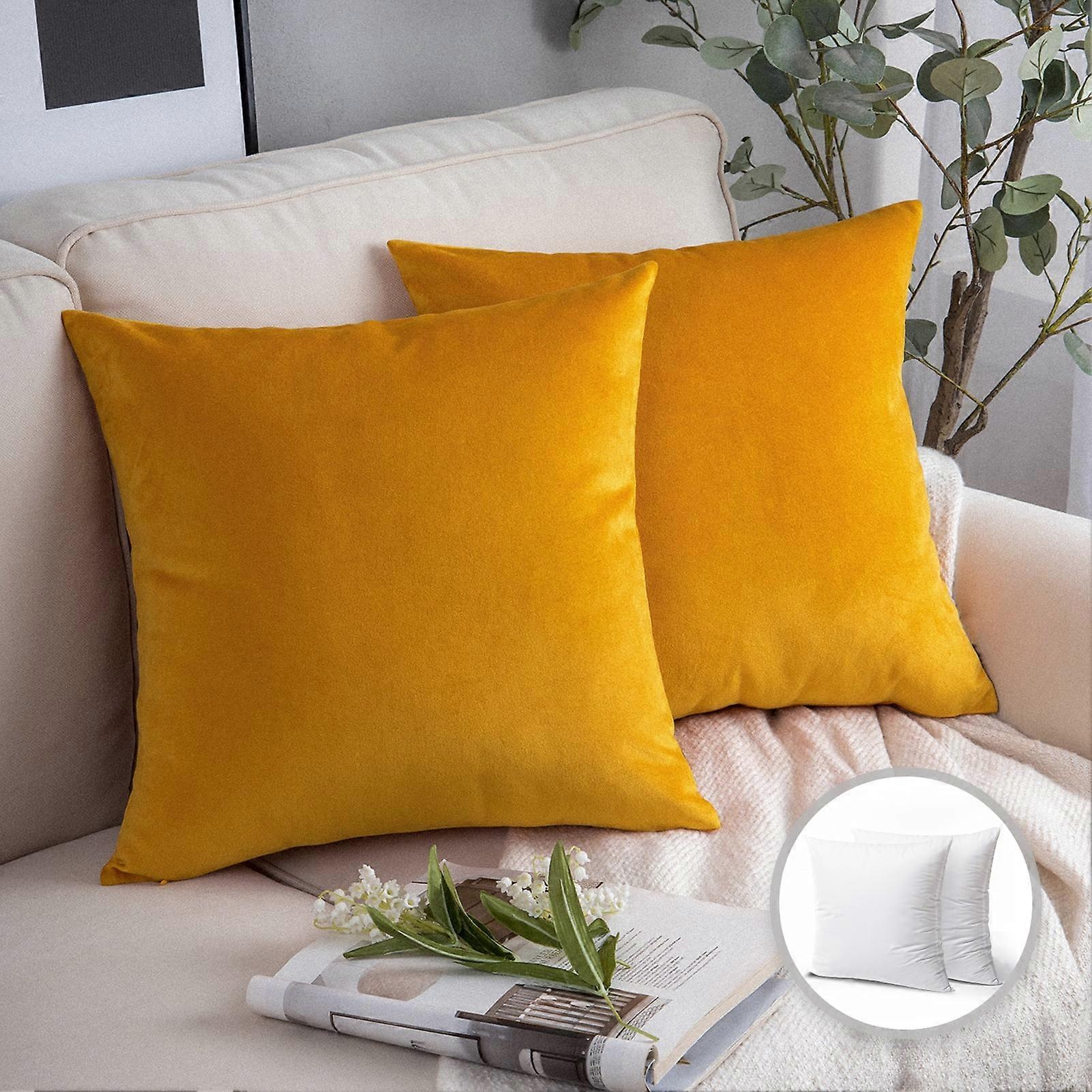 Phantoscope Soft Silky Velvet Series Square Decorative Throw Pillow Cusion for Couch, 18" x 18", Honey, 2 Pack