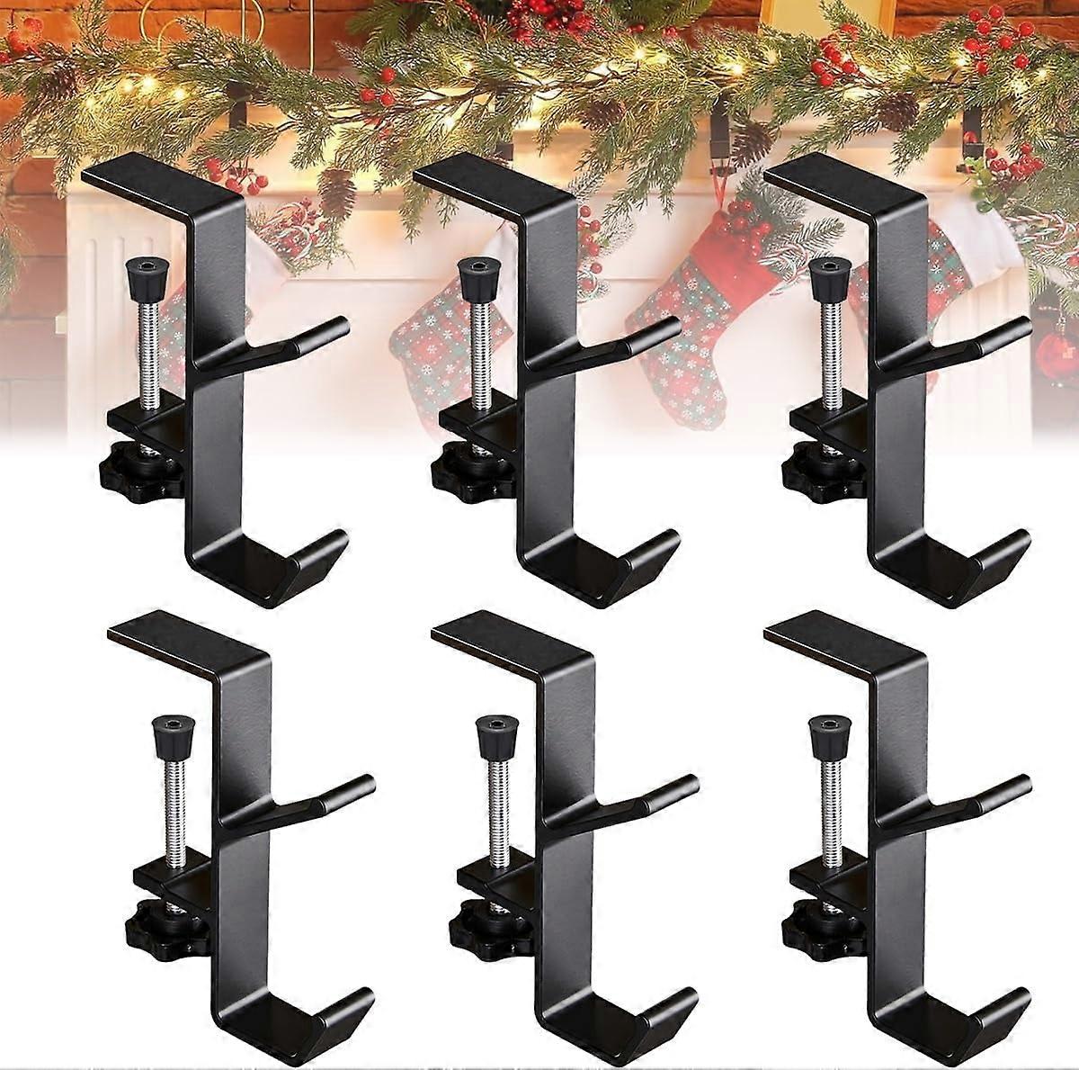 2 in 1 Mantel Hanger for Garland, Adjustable Stocking Hangers Compatible with Fireplace & Door Frame, Heavy Duty with Padded Hooks (6pcs)