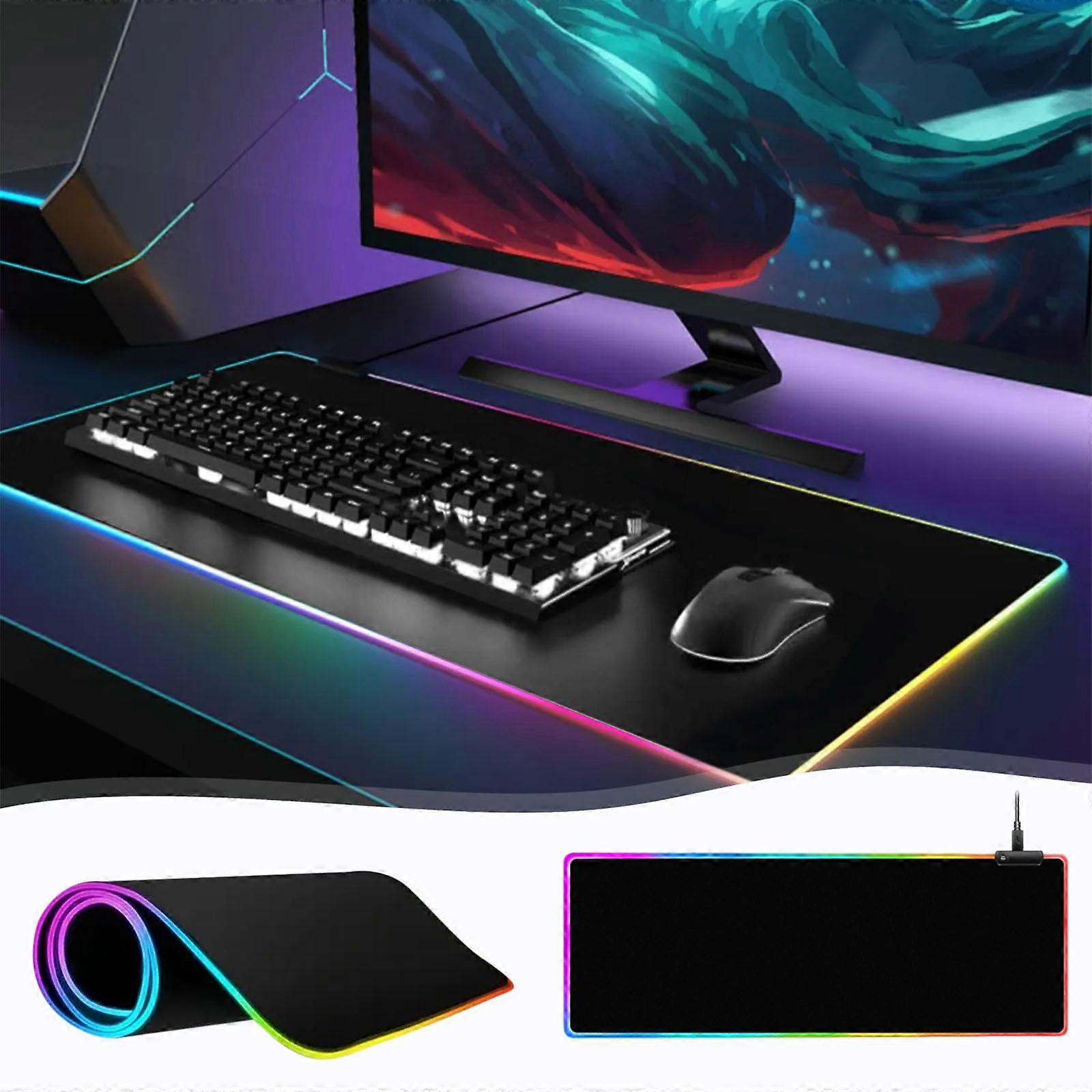 Wanfds Large RGB Gaming Mouse Pad, Leather Desk Mat with Non-Slip Base, Waterproof Office Desk Pad for Laptop - Black