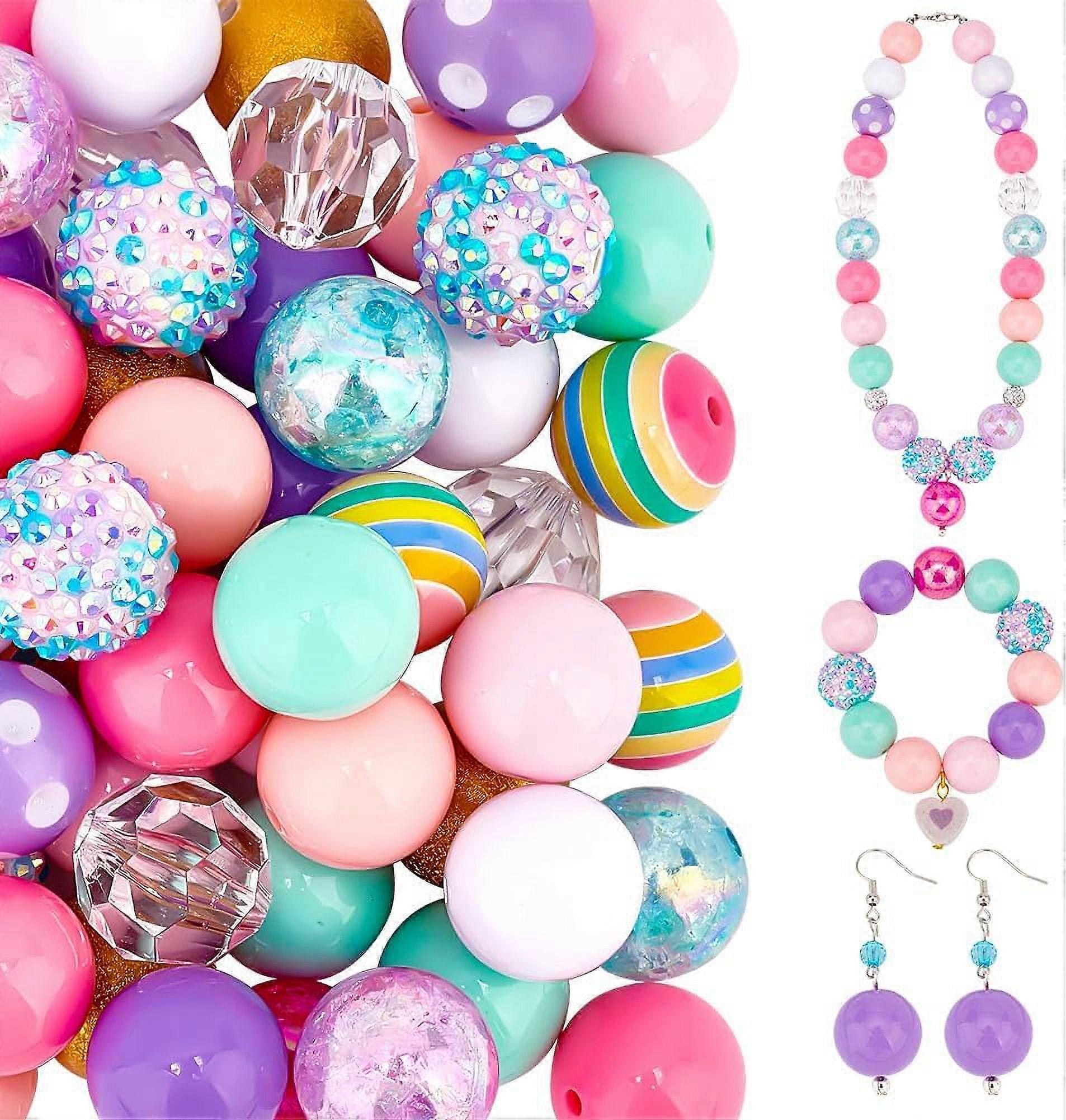 50pcs 20mm Acrylic Pen Beads, Mixed Colors Loose Beads for DIY Jewelry, Bracelets, Wedding Garland, Christmas Decor, Compatible with Craft Projects