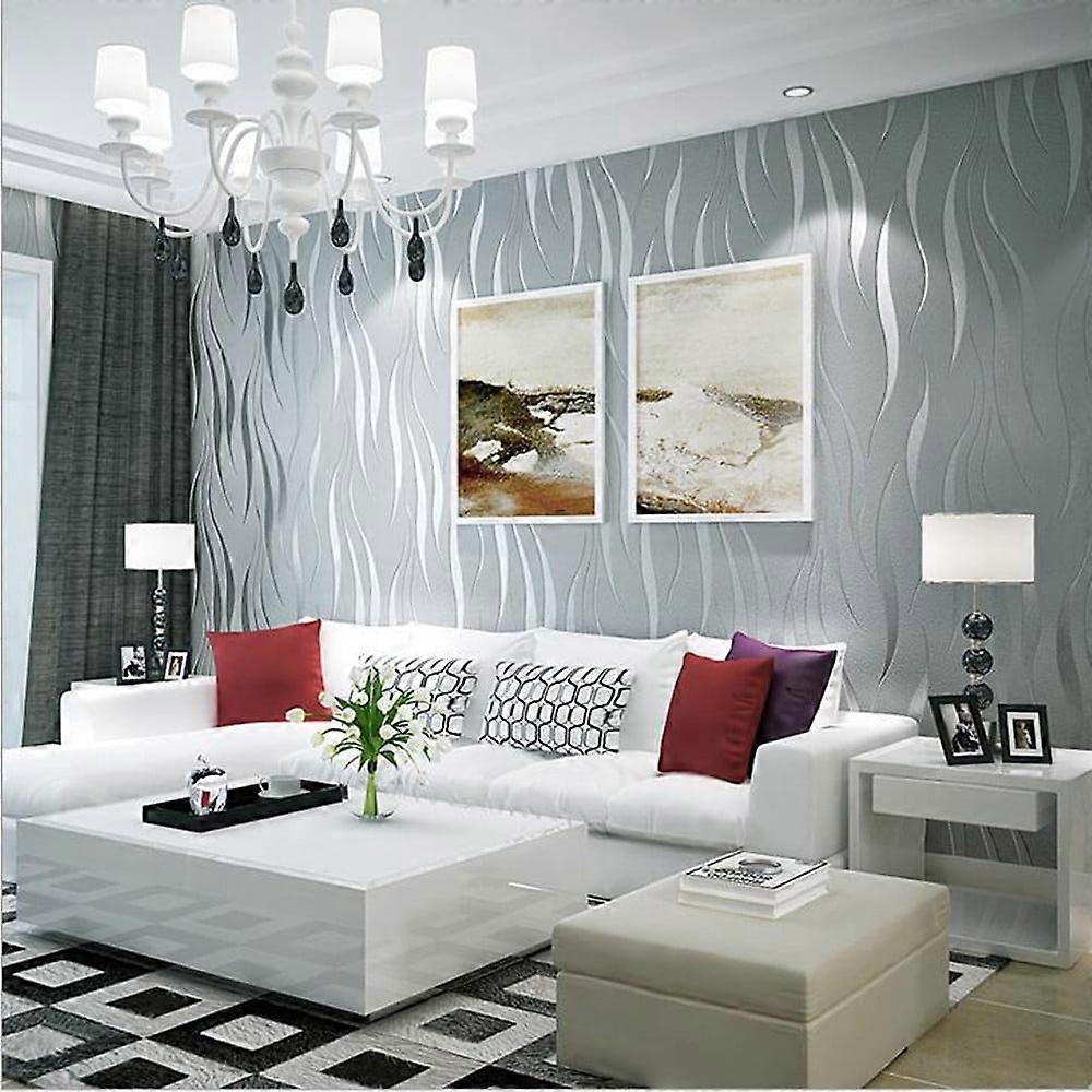 Fnyoxu 3D Non-woven Wave Stripe Embossed Wallpaper Rolls Living Room Decor 10m