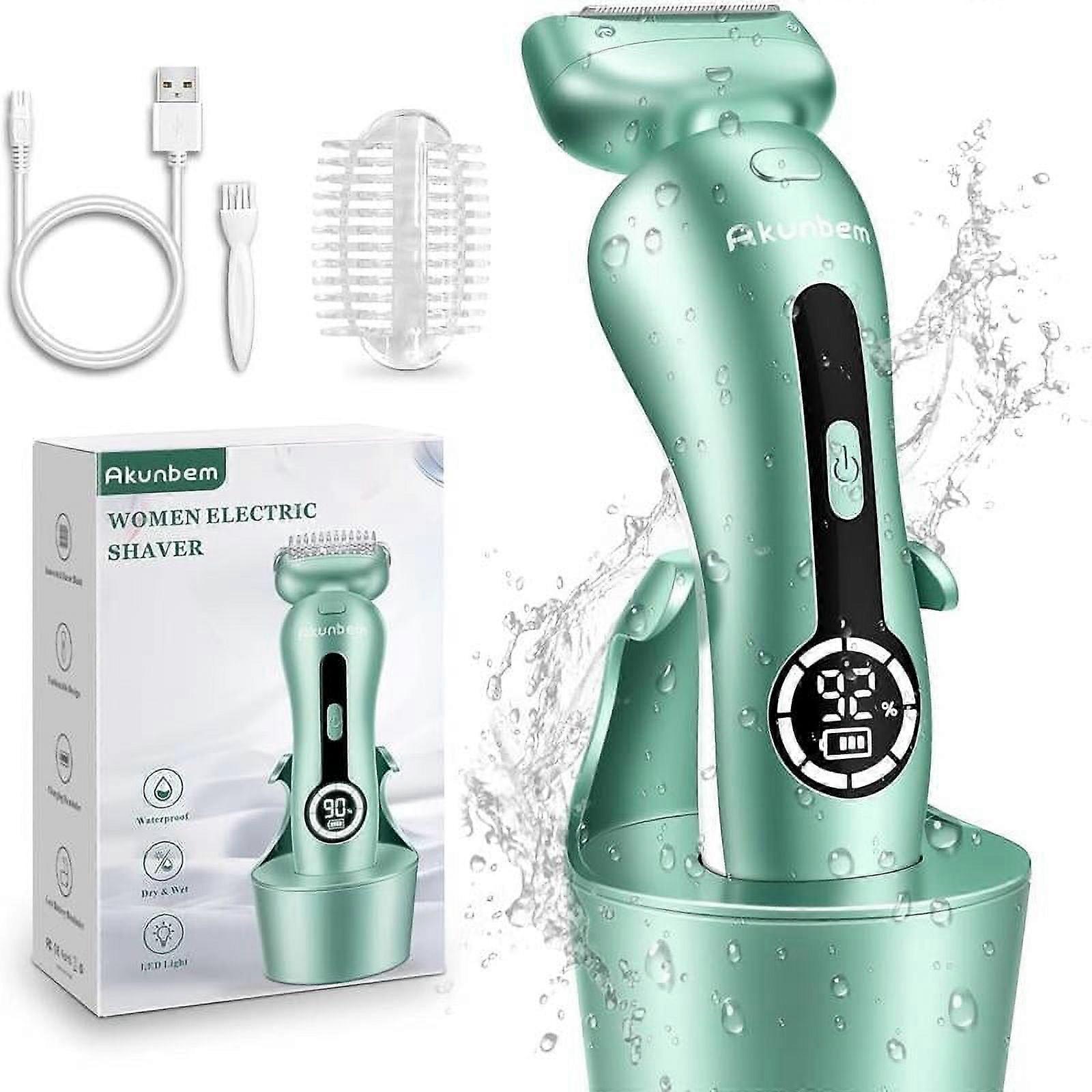 Akunbem Electric Shaver for Women, Rechargeable Trimmer with Detachable Head, Cordless Wet/Dry Use, Precise & Safe for Bikini, Legs, Underarm