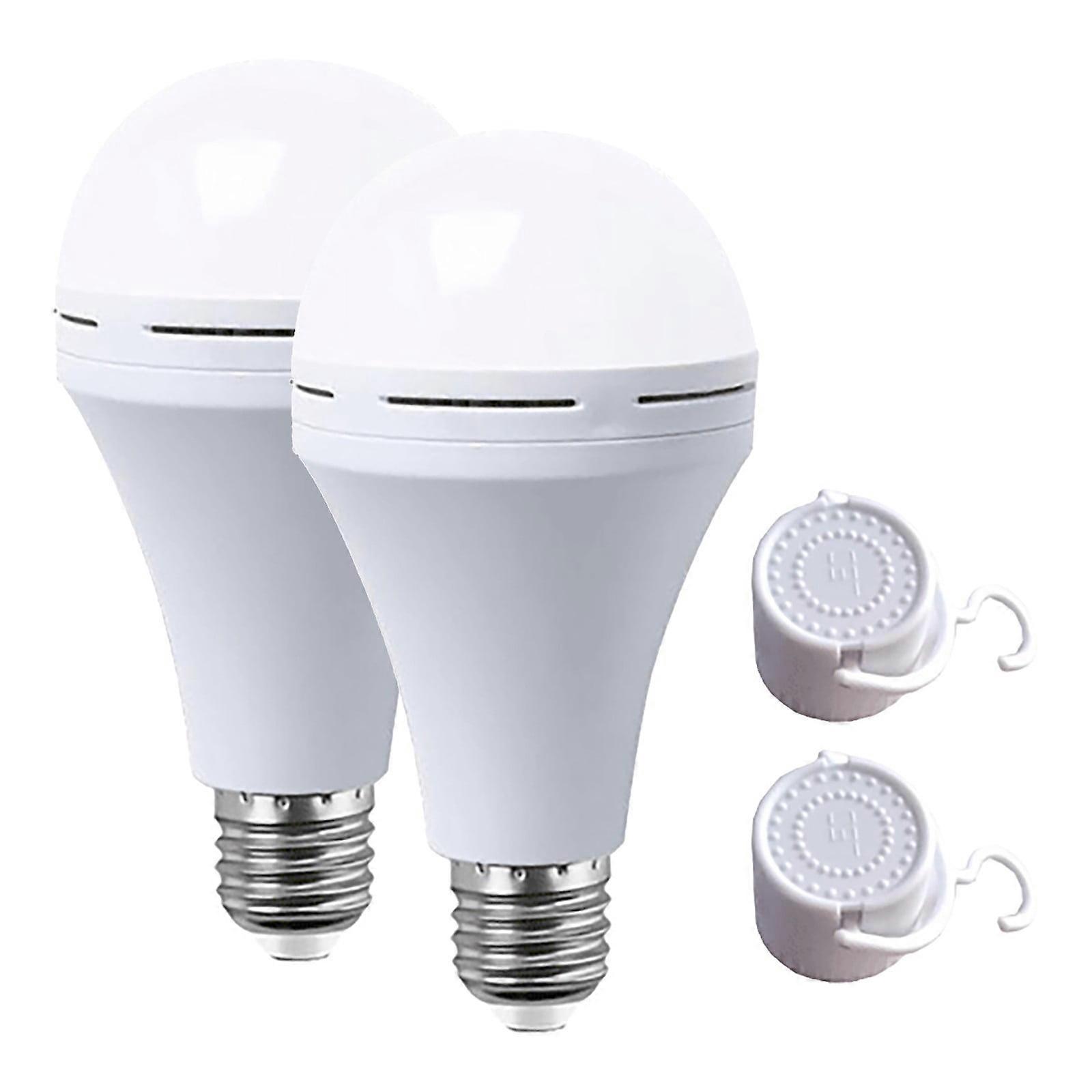 SUSHANG 2 Pack Rechargeable 12W LED Bulbs, 5000K Bright, Compatible with E26 Lamps, Emergency Lights for Camping, Garden, Power Outage
