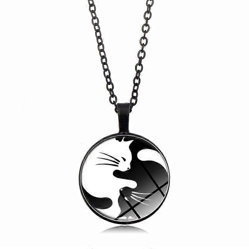 Charm Eagle Yin Yang Tai Chi Glass Pendant Necklace Black Copper Colors Chain Necklace Women Men Fashion Jewelry Accesory
