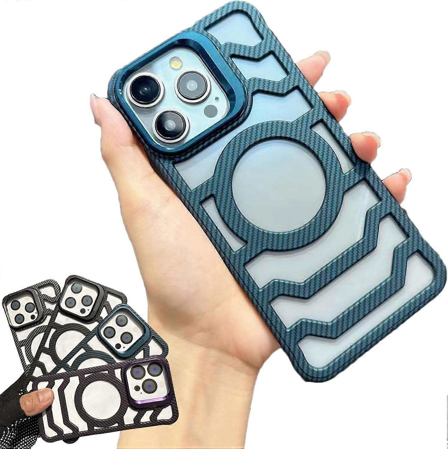 Open-Frame Carbon Fiber Case with Camera Holder, compatible with iPhone 12 13 14 15 16 Pro Max, Enhanced Airflow & Magnetic Design