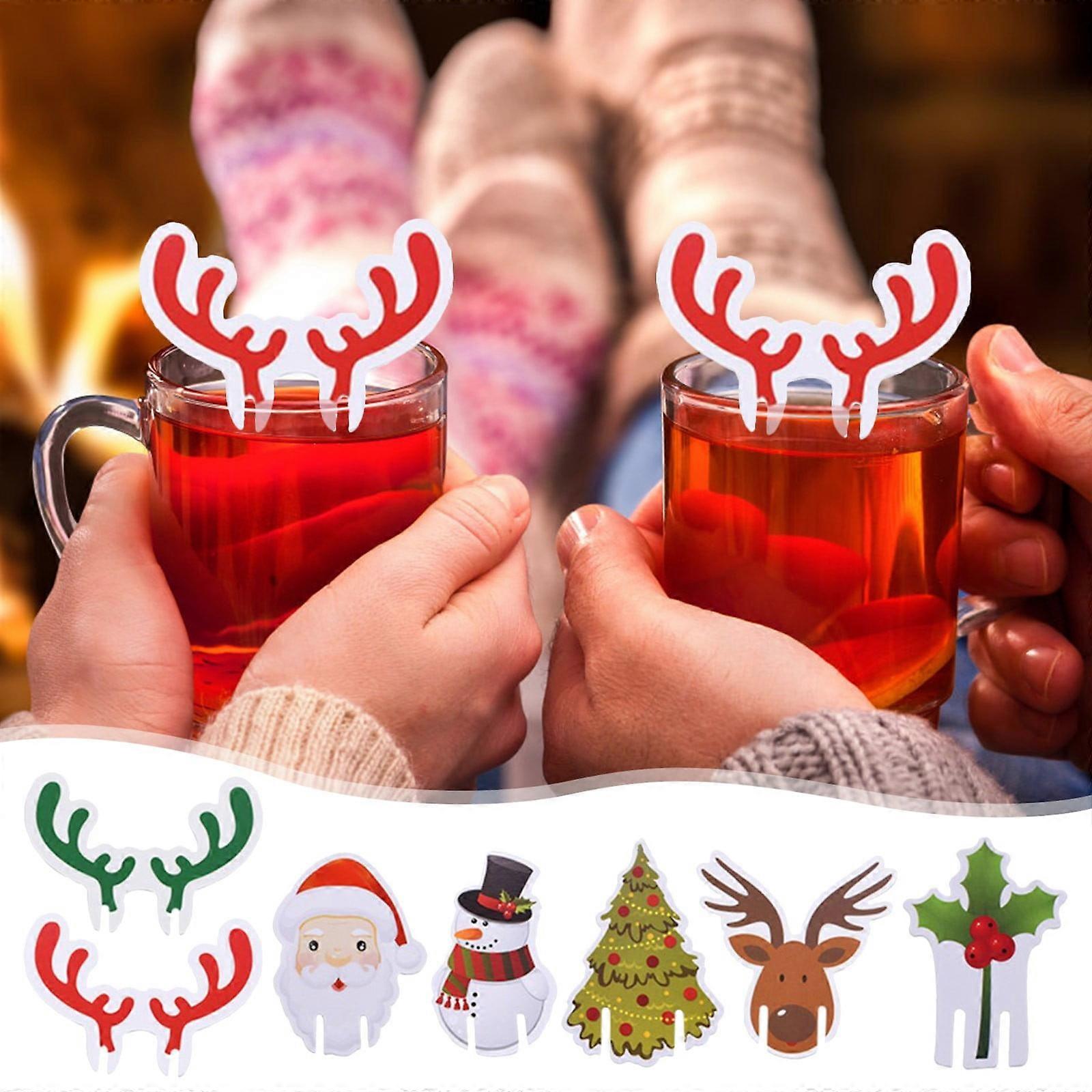 Jacenvly Christmas Ornaments Set, Red Wine Glass Cards, Santa Hat Claus Decor, Compatible with Xmas Party, Restaurant, Bedroom Decoration