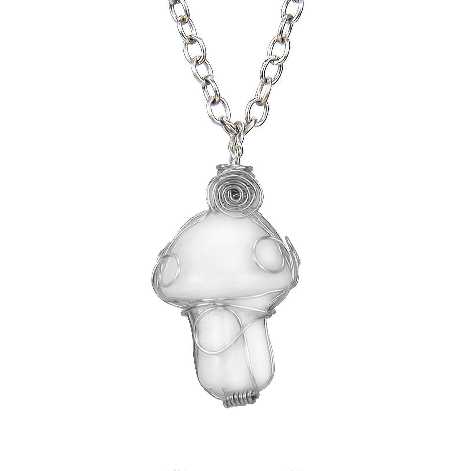Ruhiku GW Natural Mushroom Pendant Necklace Wire Wrapped Crystal Quartz Gemstone Energy Healing for Women Reiki Jewelry Gifts for Wedding Party