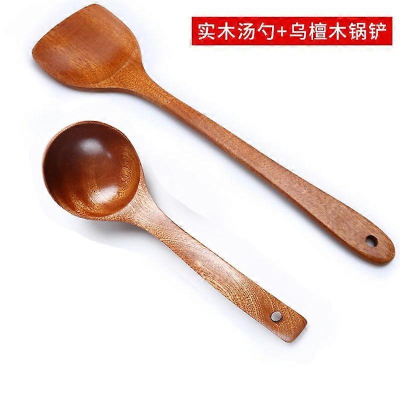 Solid Wood Spatula Ebony Household Heat-resistant Frying Spatula Wooden Soup Ladle Spatula Spoon Set Without Paint and Wax