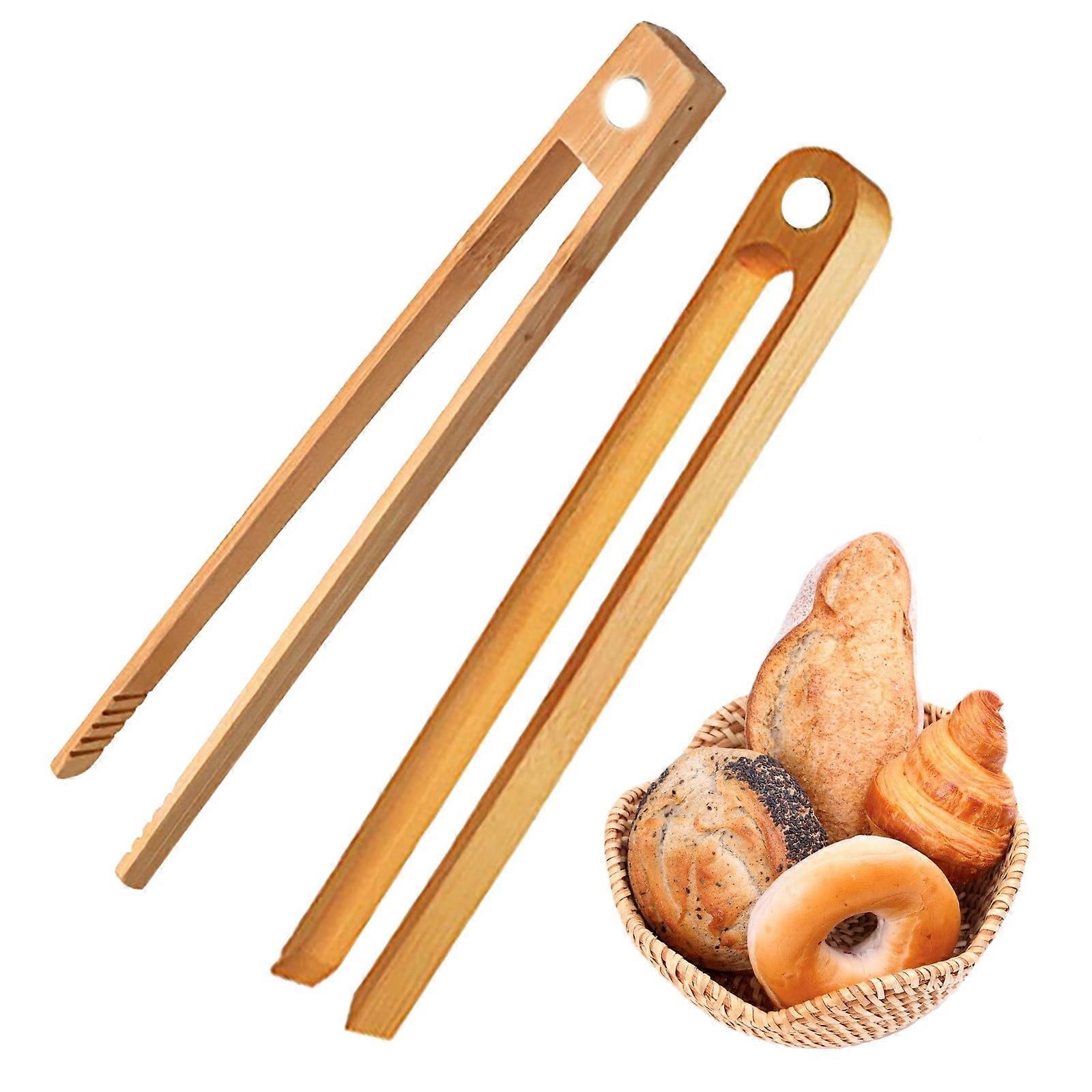 Adzgya 2 Pieces Toaster Tongs 8.7 Inch Wooden Kitchen Tongs For Cooking Natural Kitchen Utensils