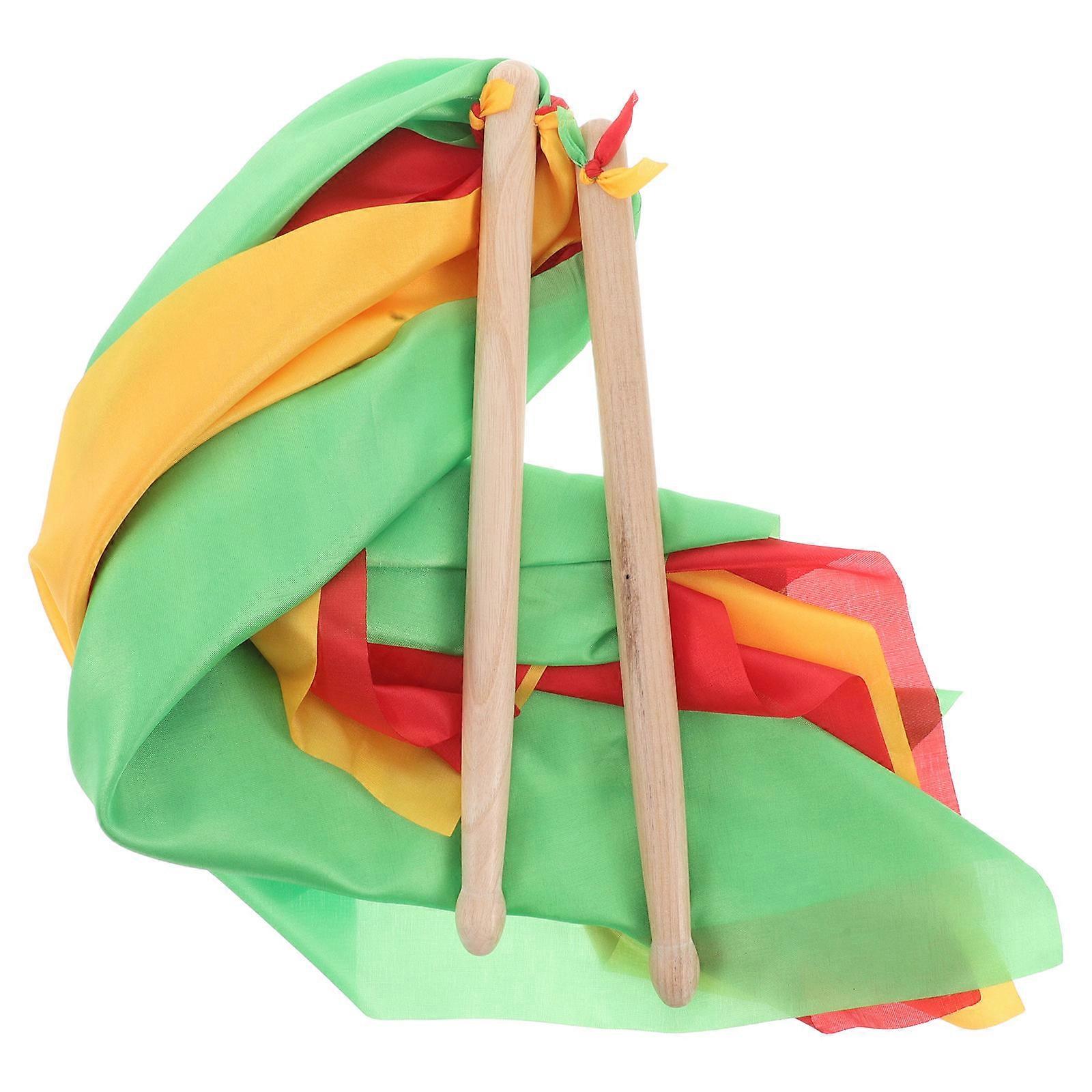 Colorful Wooden Drumsticks for Dance 2Pairs with Multi Scarves for Kids