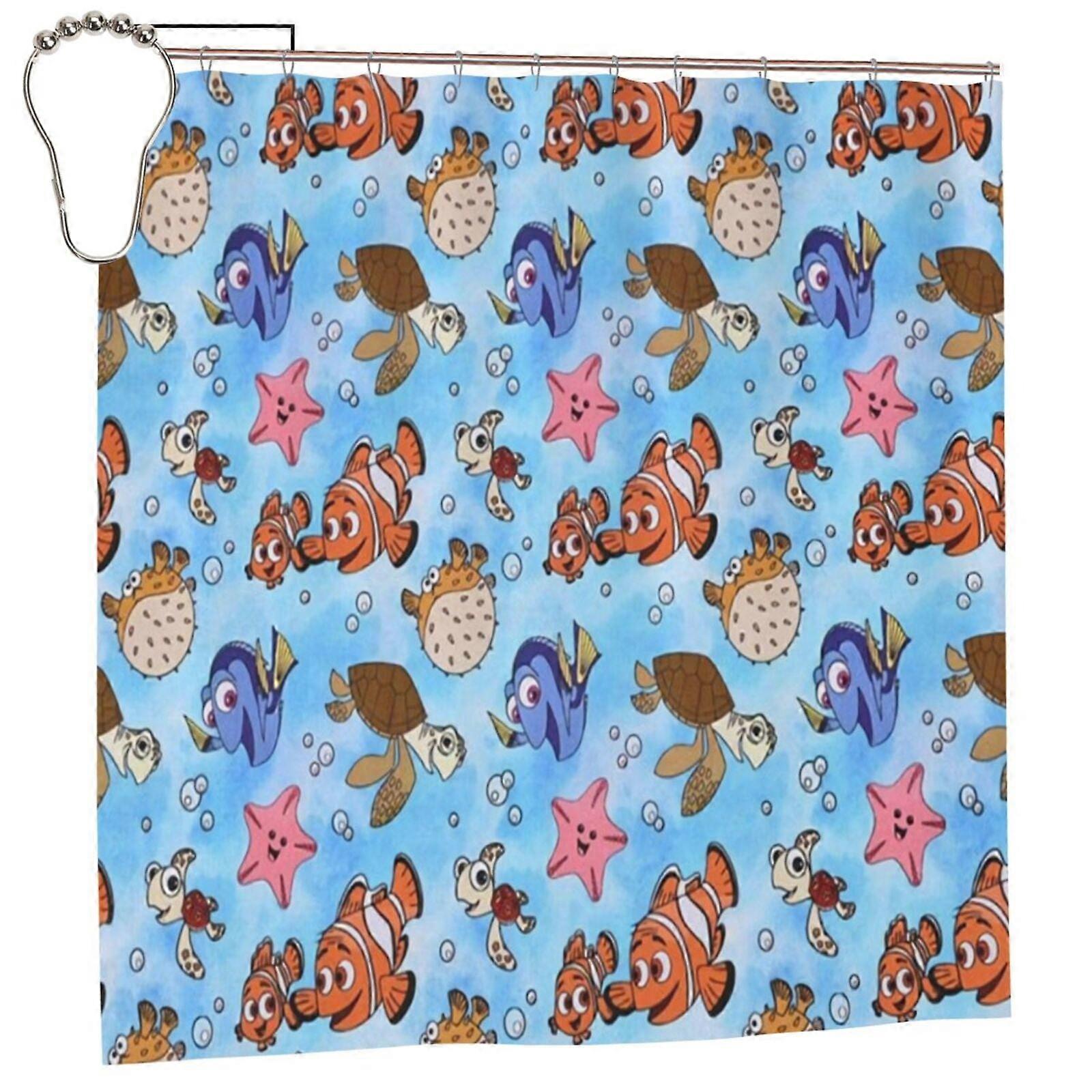 Finding Nemo Cartoon Shower Curtain 72" X 72" Anime Bathroom Decor With 12 Hooks Waterproof Washable Polyester Fabric For Bathroom Shower