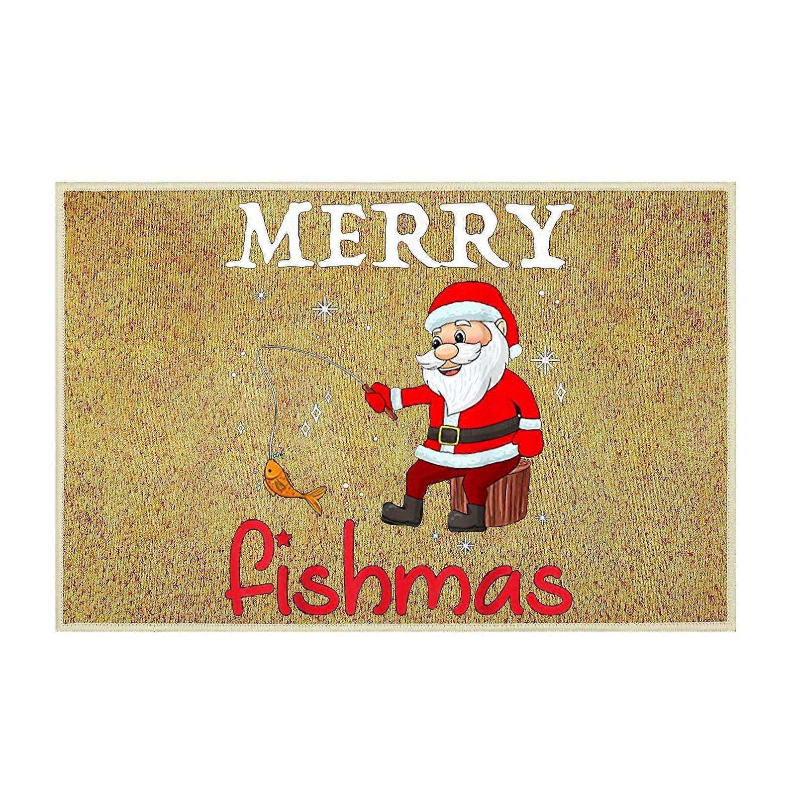 Christmas Santa and Fish Floormat 40x60cm, Anti-Slip, Water Absorption, Velvet, Cute & Funny Design