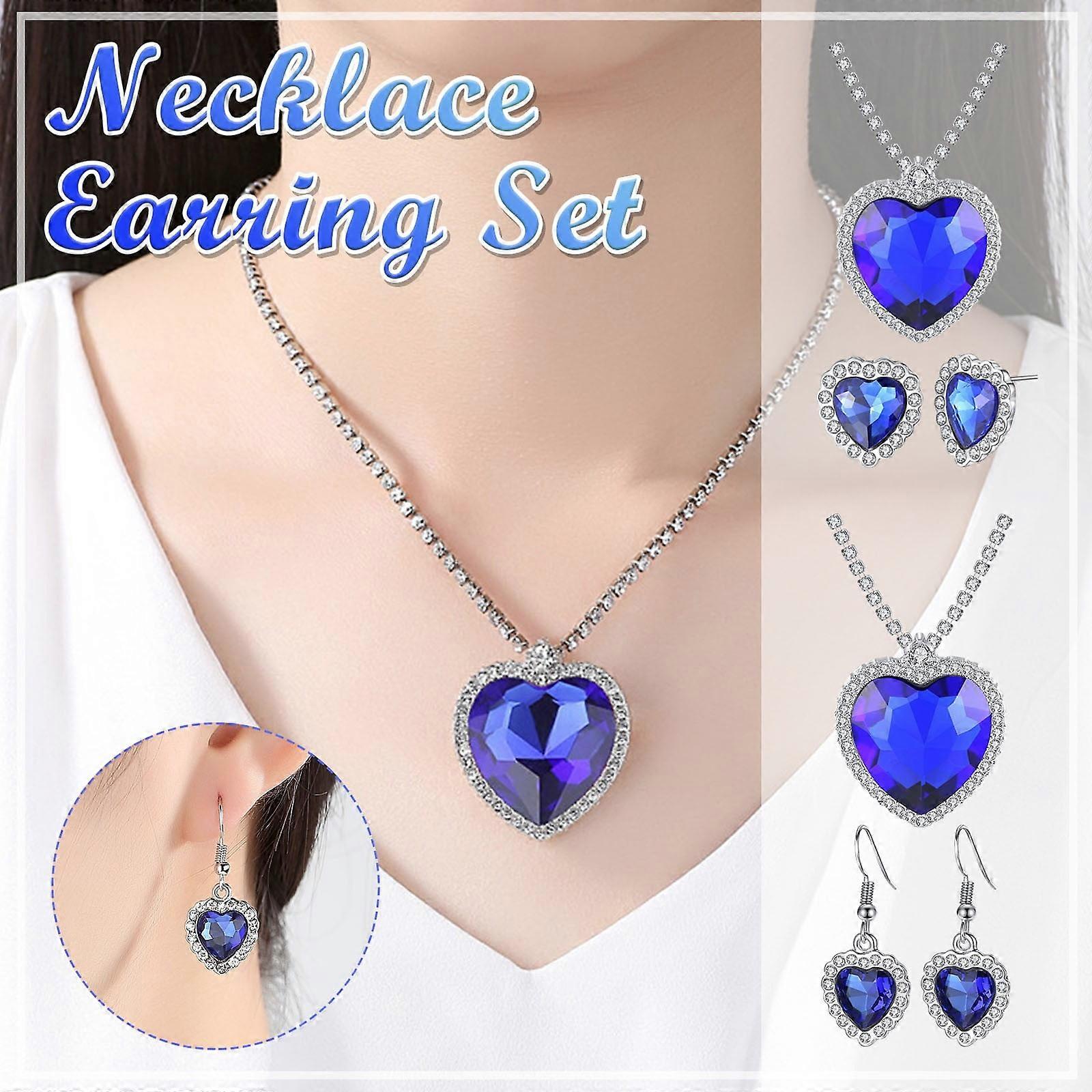 Jacenvly Mother's Day Clearance Jewelry Set - Crystal Earrings & Necklace, Wedding Style, Gift for Women (Compatible with gift-giving)
