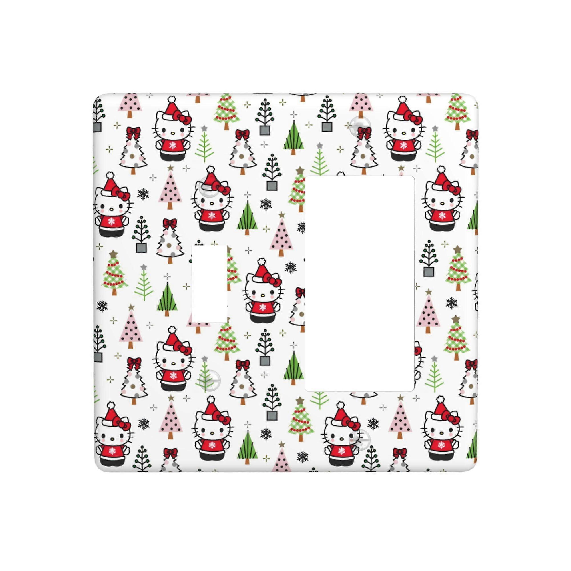 Hello Kitty Christmas Print Wall Panel Decor, Compatible with Switch, 4.5x4.5in, PC Material, for Home Bedroom Kitchen