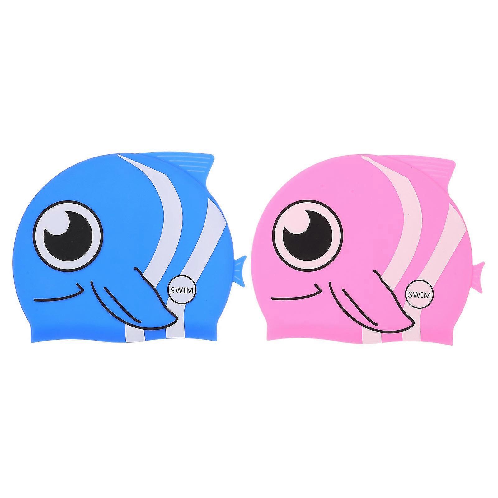Kids Swim Caps With Fish Design - Silicone Swim Hat Providing Ear Protection - Perfect For Summer Swimming Training And Pool Activities - 2Pcs