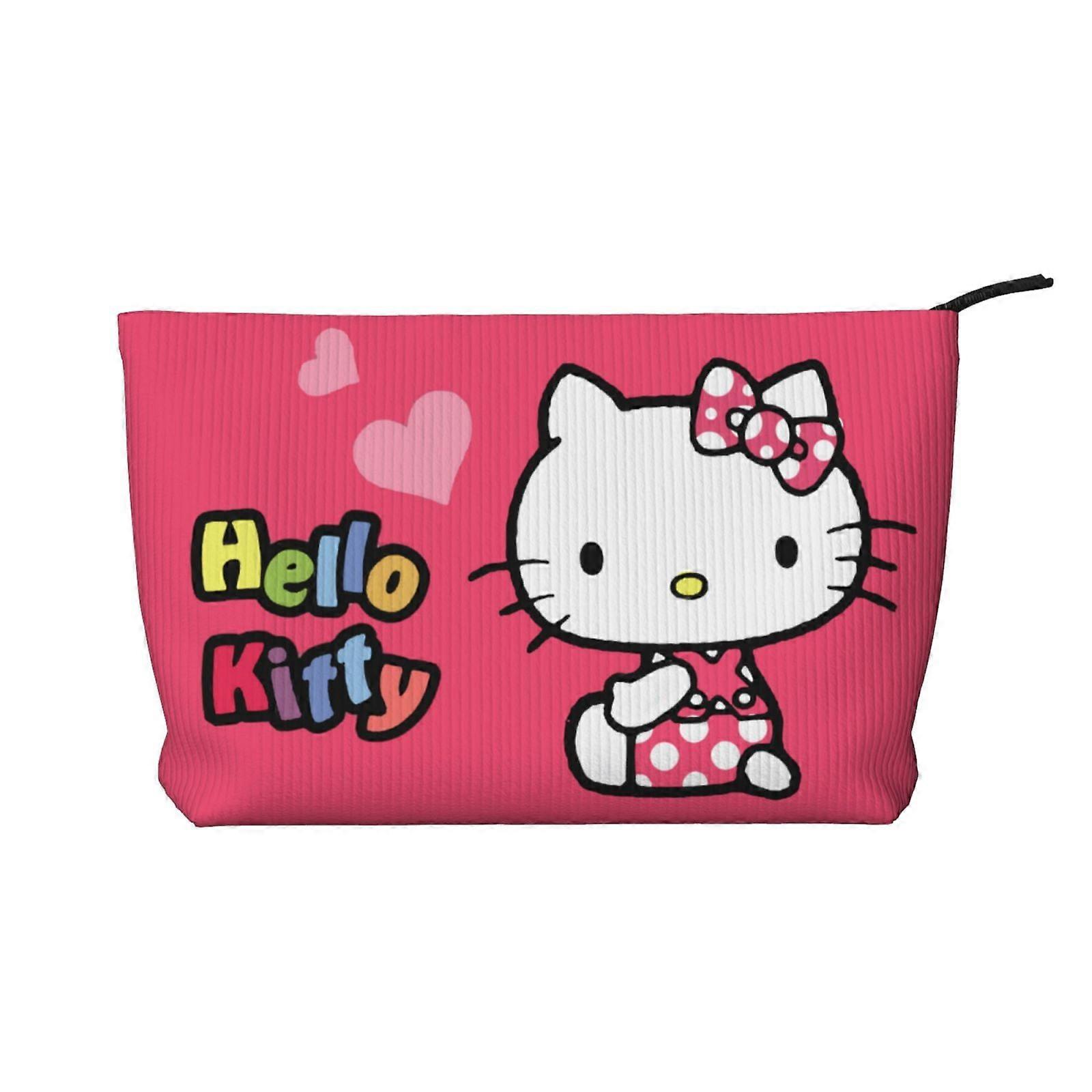 Cute Hello Kitty Cartoon Cat Makeup Bag for Women and Girls, Large Capacity Corduroy Cosmetic Pouch with Zipper, Compatible with Travel Skincare &