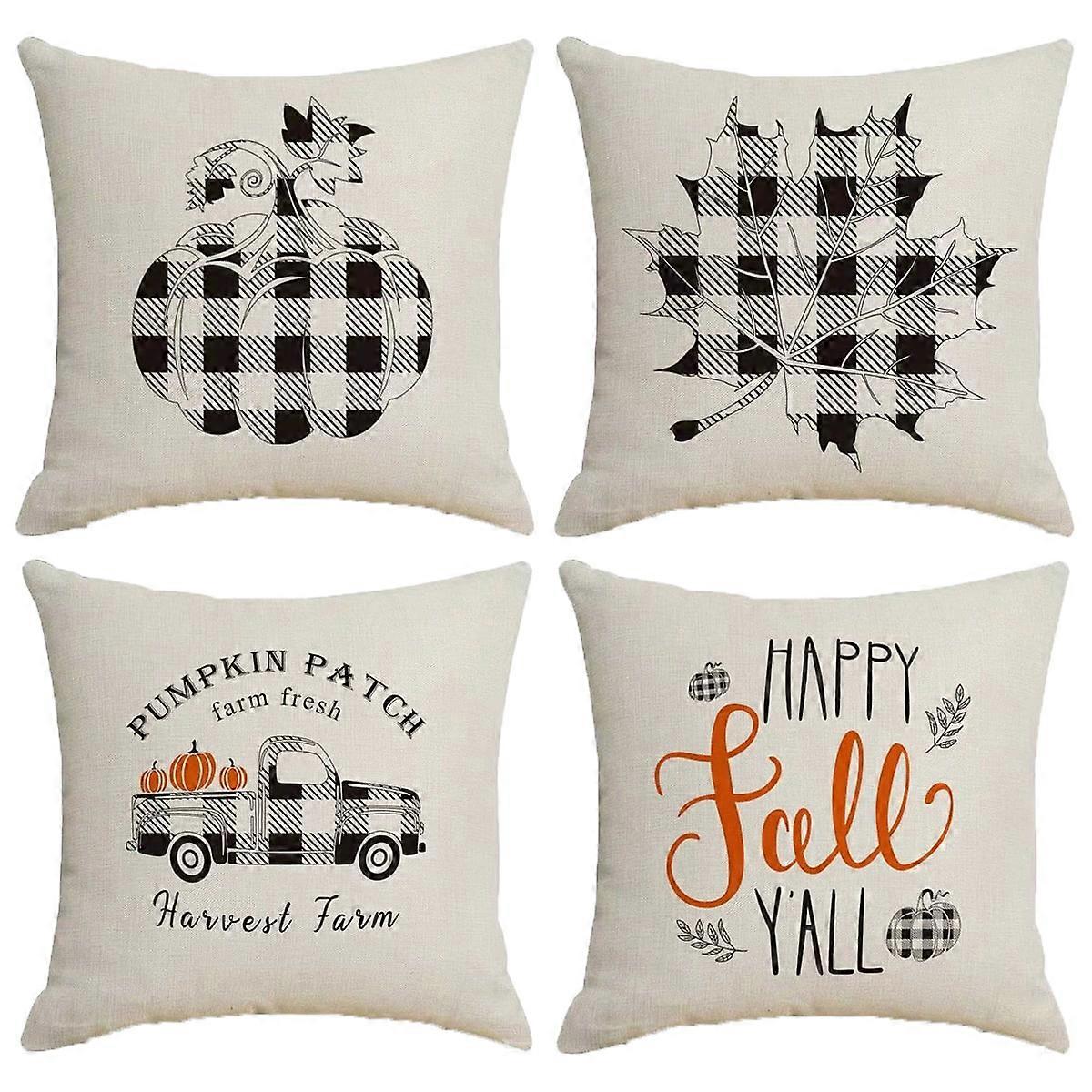 2CFun Thanksgiving Throw Pillow Covers Farmhouse Buffalo Check Plaid Pumpkin Pillows for for Thanksgiving Day Bedroom Decor 18x18 in