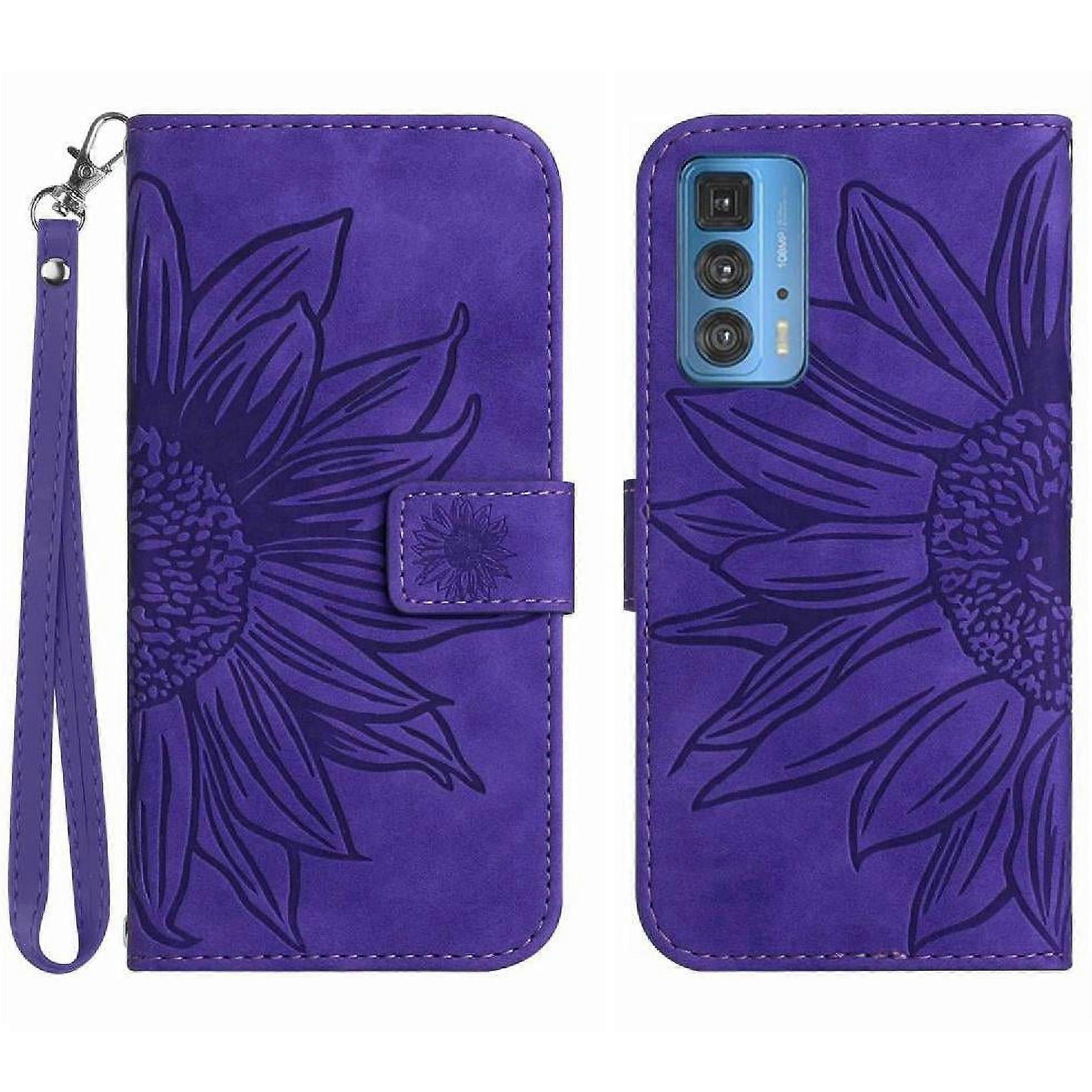 Case for Motorola Edge 20 Pro Embossed Sunflower Flip Wallet Phone Case Short Strap With Card Slots Holder Luxury PU Leather