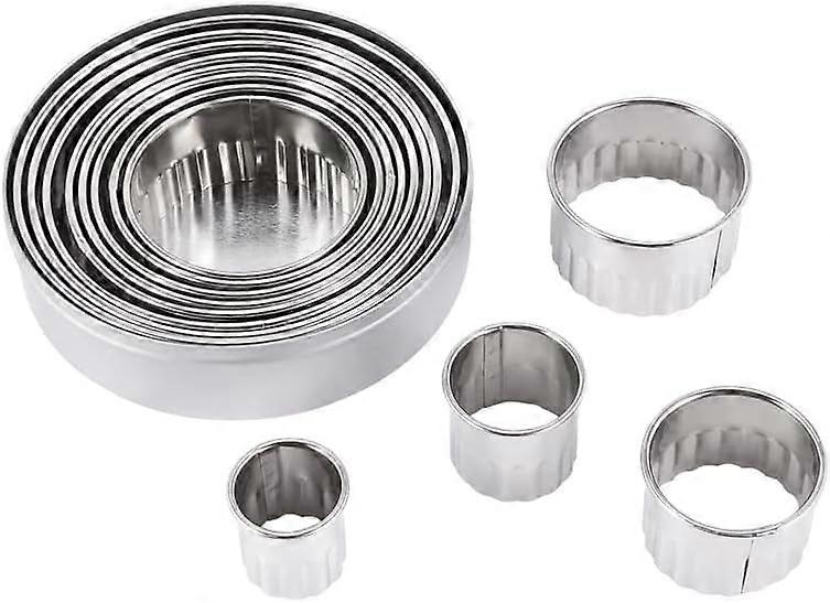 12 Pcs Fluted Cookie Cutters, Circle Baking Metal Ring Molds, Heavy Duty Steel Biscuit Cutter Set for Donut, Pastries, Fondant Cake, Serrated Round