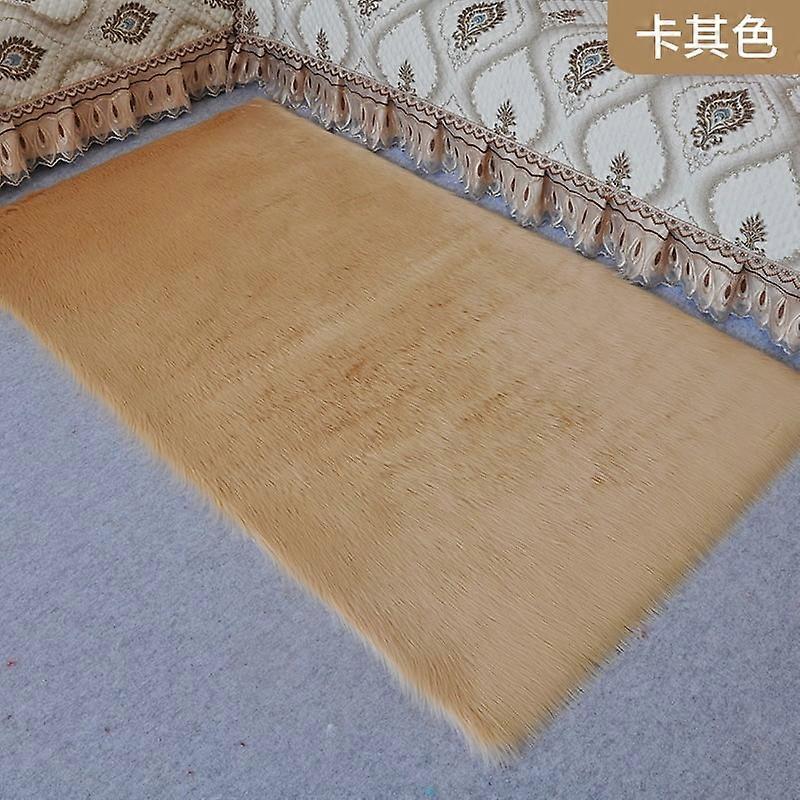 Nvzi-b Solid Color Plush Table Runner, Faux Sheepskin Shaggy Dresser Scarf, Non-Slip Desk Pad, Luxury False Fur Tablecloth - Khaki 30x30cm