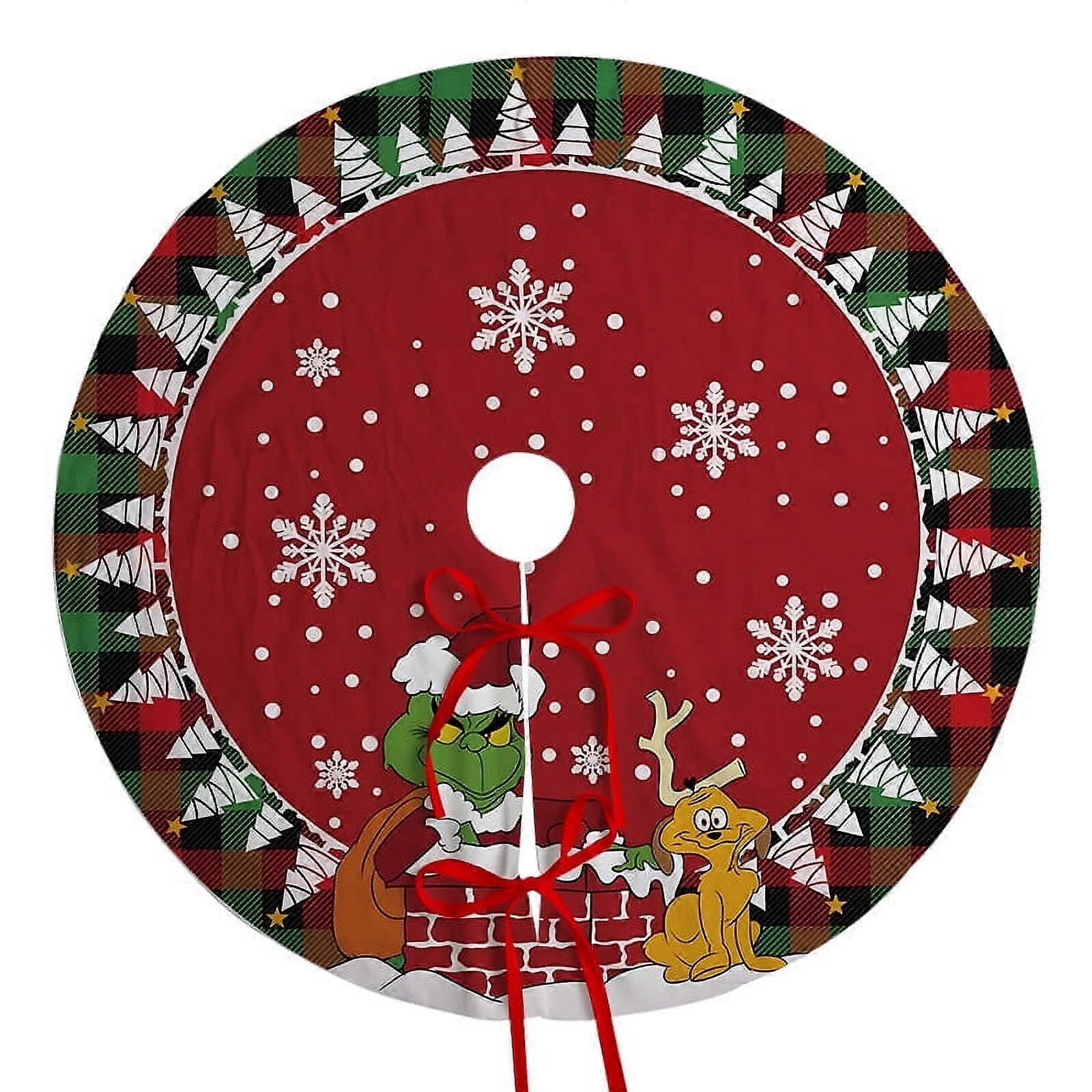 Merry Christmas Tree Skirt Collar, 120cm Soft Green Grinch Farmhouse Xmas Holiday Decoration, Large Funny Design