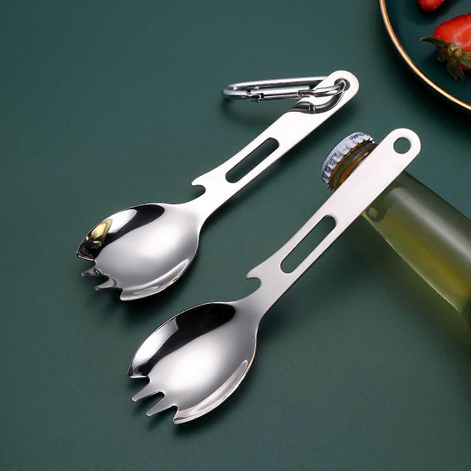 304 Stainless Steel Spoon Purpose Toothed Spoon Fork Dessert Spoon Fruit Fork Multifunctional Outdoor Portable One Spork Feature: Quantity: 1Pcs Color: S-ilver Material: 304 Stainless Steel Product size:4.2x0.1x15.8cm/1.65x0.03x6.22in Package size:4.2x0.1x15.8cm/1.65x0.03x6.22iin Net weight:35g/0.07lb Gross weight:35g/0.07lb Description: Chosen good steel, hardgoods and unworry: this product is carefully made of good stainless steel, and after strict quality control and fine process disposal, it ensures that the product is hardgoods. Whether it's a daily meal or an outdoor adventure, it can easily cope with all kinds of environments, and it will remain as bright as new after long-term use. It is an ideal companion for your dining table. Spork's integrated design is convenient and efficient: the fork and spoon are innovatively combined perfectly, which can be used for two purposes, greatly improving the convenience of use. Whether you enjoy pierce meat, or scoop soup and dessert, you can handle it easily, without changing tableware frequently, making the dining process smoother and more comfortable. Multi-purpose, integrated function: In addition to the basic spork function, this product also incorporates more practical designs. Unique inclined side design, cleverly transformed into a primitive cutting tool, easily cut food, vegetables or small patch of meat to meet your different dietary needs. Whether it's an outdoor picnic, it can be your right-hand man at the table. Hook design, easy storage and no space occupation: The specially equipped hook design allows this multifunctional spork to be easily hung on a bag, backpack or tableware rack when not in use, which is avoids the health problems that may be caused by direct with the desktop, but also greatly saves storage space and makes your trip more tidy and orderly. The hidden bottle opener design can unlock life. Fortunately, even more surprisingly, this product also has a built-in bottle opener function, which can easily handle beer bottles, beverage bottles or red wine bottles, so that you can enjoy a cup of funny at any time while enjoying food. This thoughtful design makes this multifunctional stainless steel spork an essential artifact for your travel, camping and picnic, adding more convenience and funny to your life. Package Content: 1 x 304 Stainless Steel Spoon 【CONVENIENCE】It is good for our life and can make our life easier. 【EASY TO USE】You can use it very easily. 【HIGH QUALITY】Practical gadgets for life. 【GIFT】A little helper in the kitchen, this is the best gift for your wife. 【BEST SERVICE】We respect and cherish every customer. If you have any questions before or after ordering, please feel free to contact us. We strive to provide services that meet your requirements. If you have any questions about our products, please feel free to contact us directly. We will reply and solve your problem within 24 hours. Happy shopping for you!