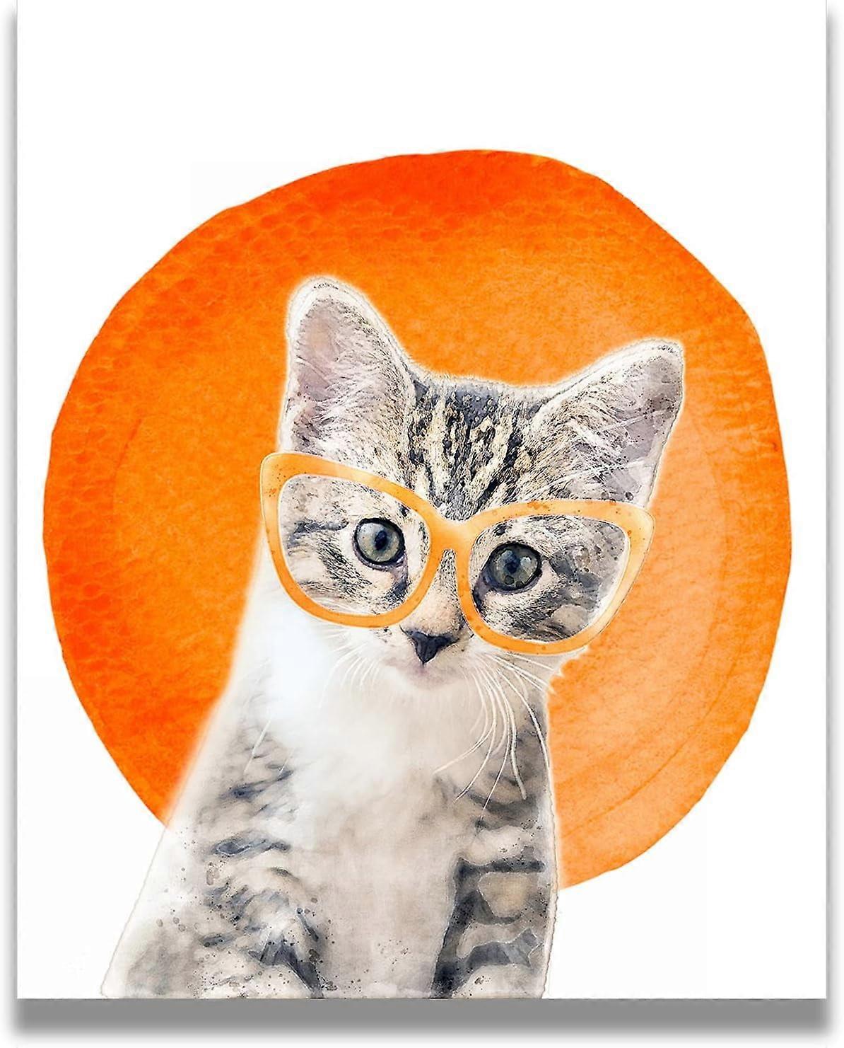AEFER Cat With Glasses Room Decor Kids Playroom Decor Fun Wall Art for Optometrist Decor Boys and Girls Nursery or Bedroom Decor print