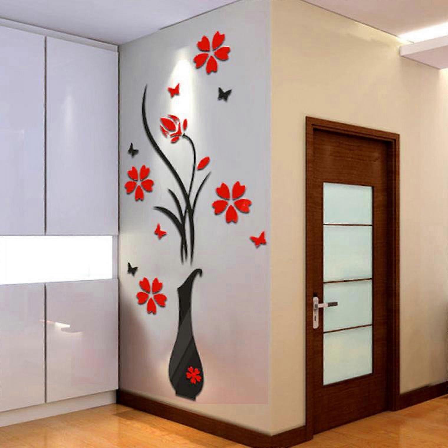 WRXMIJNHGSA DIY Vase Flower Tree Crystal Arcylic 3D Wall Stickers Decal Home Decor