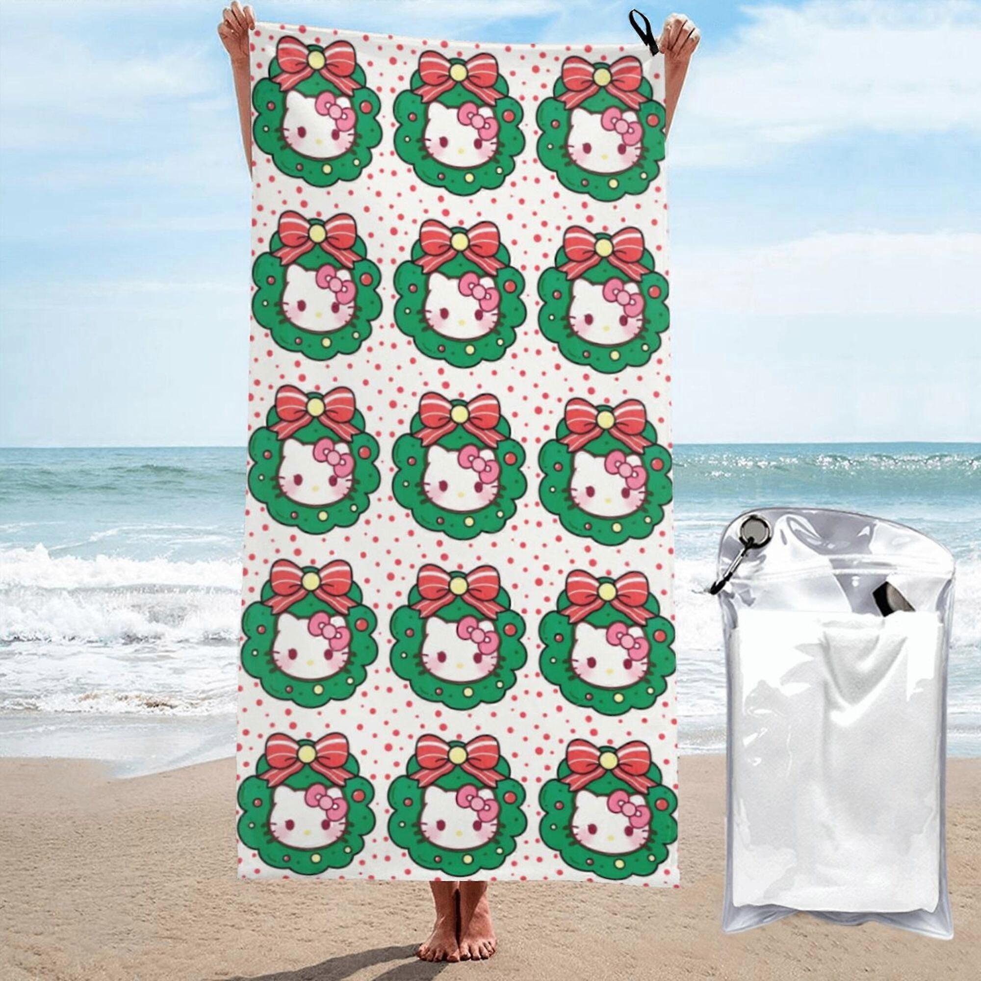 Hello Kitty Christmas Microfiber Bath Towel, Soft Quick-Dry for Travel, Swimming, Sports, Beach (Vertical 31.5" x 63")