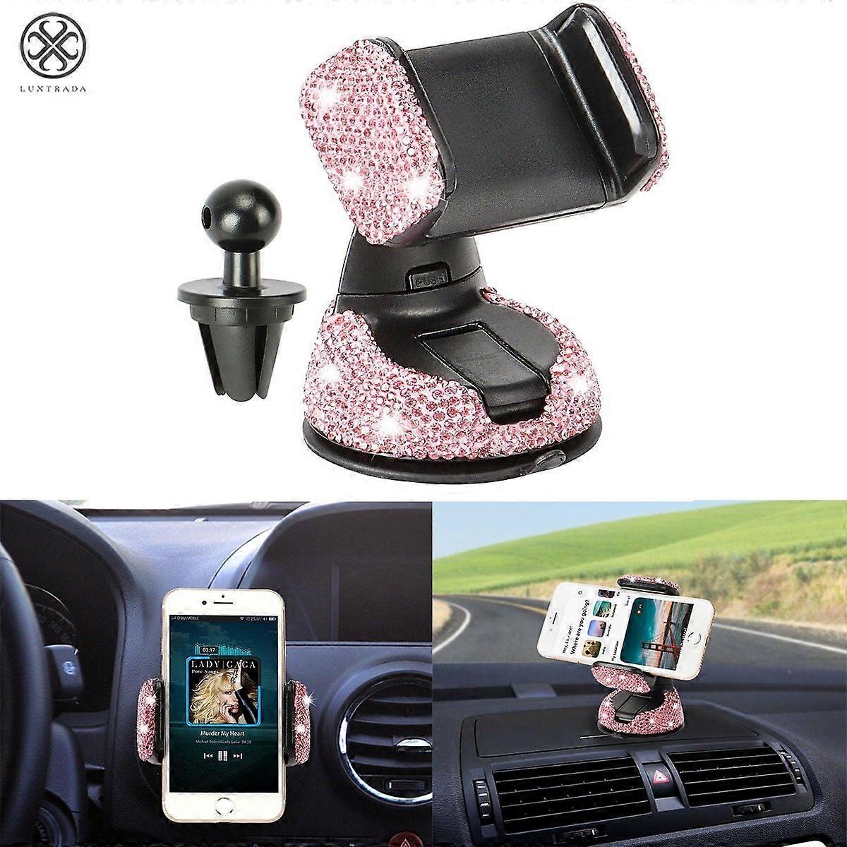 Luxtrada Bling Car Phone Mount with Rhinestone Crystal, Universal Holder Clip Compatible with Dashboard, Windshield & Air Vent