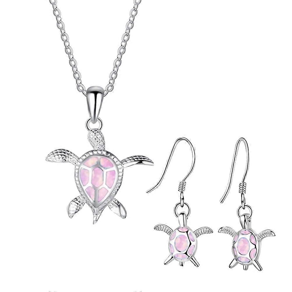 LEAQU Fashion Faux Opal Inlaid Turtle Pendant Necklace Hook Earrings Women Jewelry Set